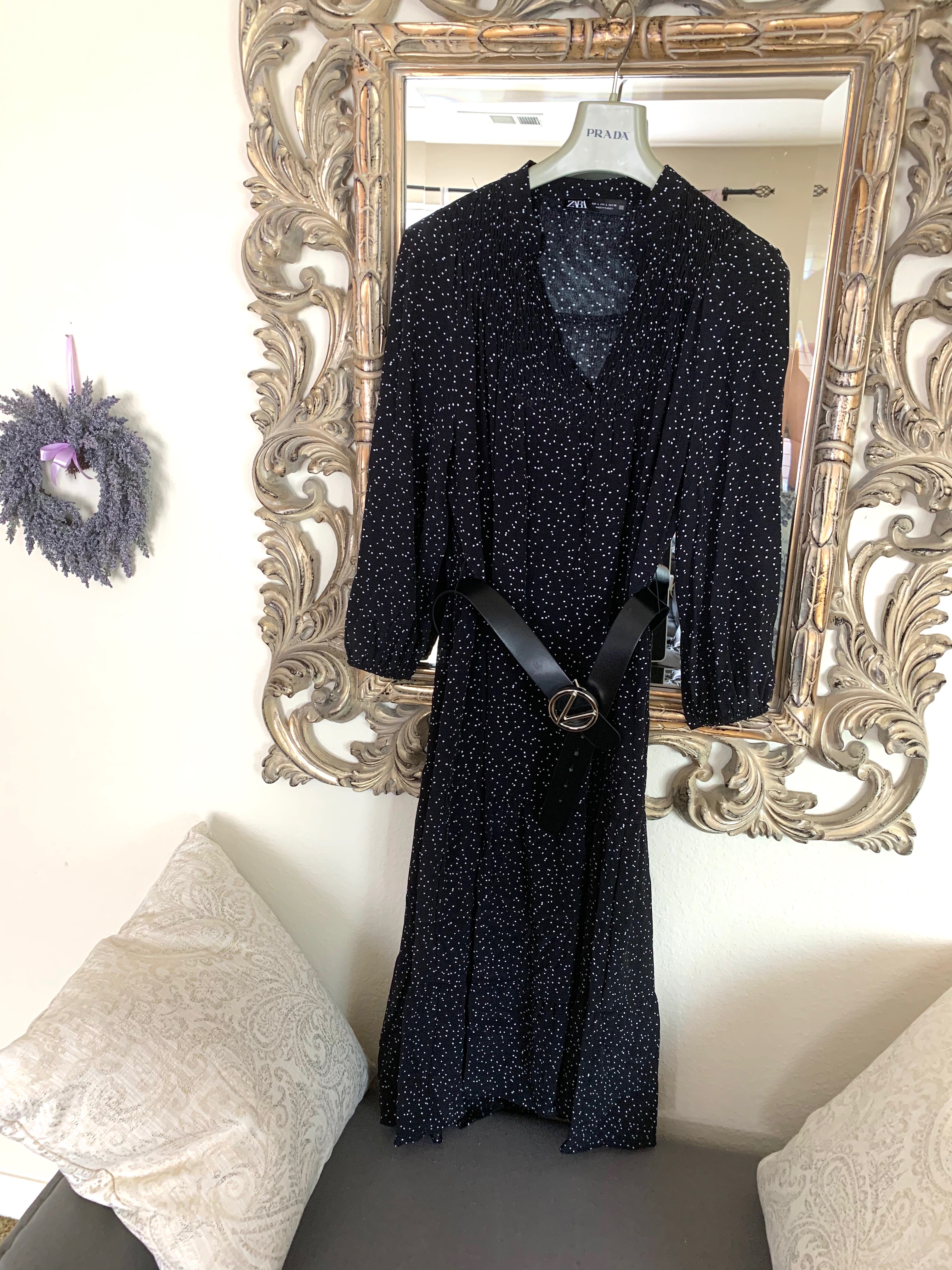 Вот из Зары, я правда пояс свой одела, у нее чиповато смотрится. Платье 65 долларов