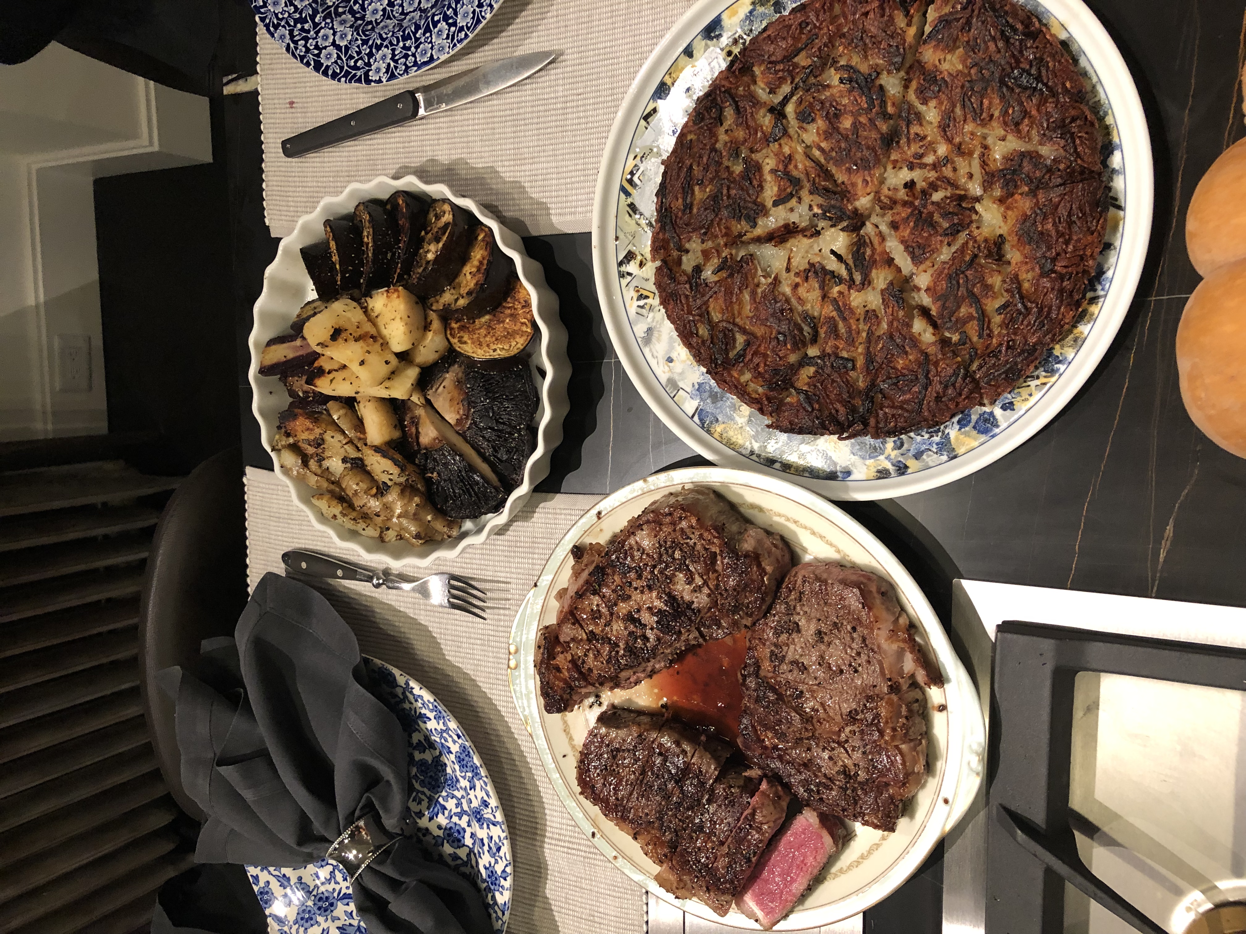 Я делала картофельные галеты, его папа меня научил, вот, ну и салат. А овощи с фермы, с upstate NY, portobello тоже в этот раз хороши. Покупали на рынке. Сегодня же субботний рынок в городе повсюду.