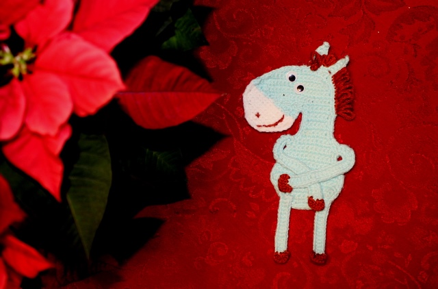 Аленка, спасибо! Прикольная лошадка, это на елку или просто сувенирчик? Ну тогда я свою тоже попользую для поздравления это пробный шар был, нитки какие под руку попались, бледненькие. Вообще-то это должна быть закладка книжная, но что-то как-то мягковато все для закладки, наверное, надо сзади чем-то ее укреплять, зараз и узелки припрятать. С наступившим вас, девочки, чтоб больше хороших идей приходило в голову и было время для исполнения, ну и средства тоже чтоб позволяли не только перед телевизором коников вязать, но и в шезлонгах на круизах и всяких гаваях!