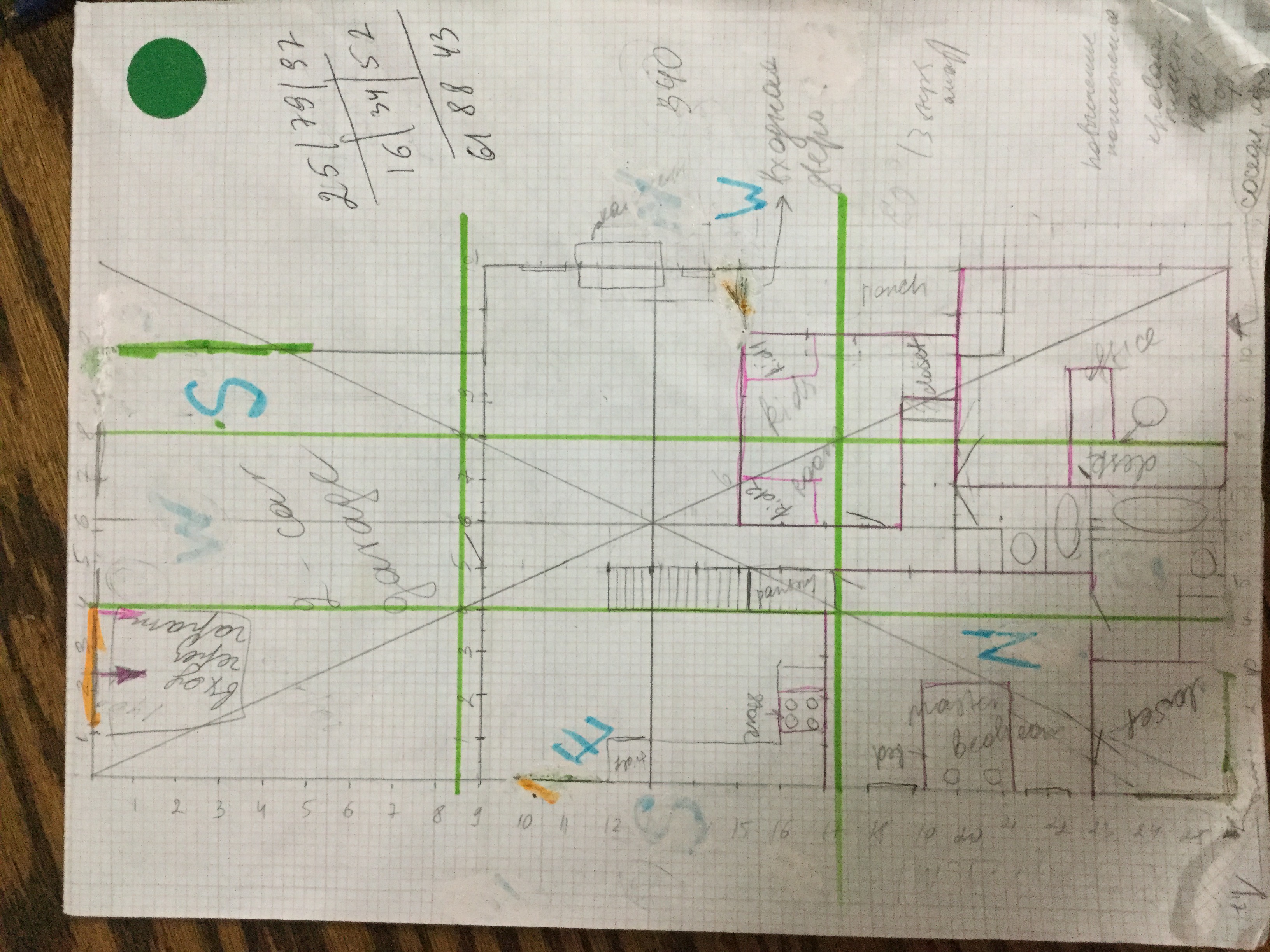 Silver Bullet, Я наконец-то поразгреблась и хочу прямо снова в бой. Дом сама не взялась чертить, мерила-мерила, что-то намерила.. Вот такой мне пирог сделали.. Посмотрите, пожалуйста, правильно? а то мне сначала на 10 градусов с разницей так же нарисовали.. Это если я стою лицом к двери, снаружи дома, стрелка совмещена с севером, то у пупа у меня 183 градуса