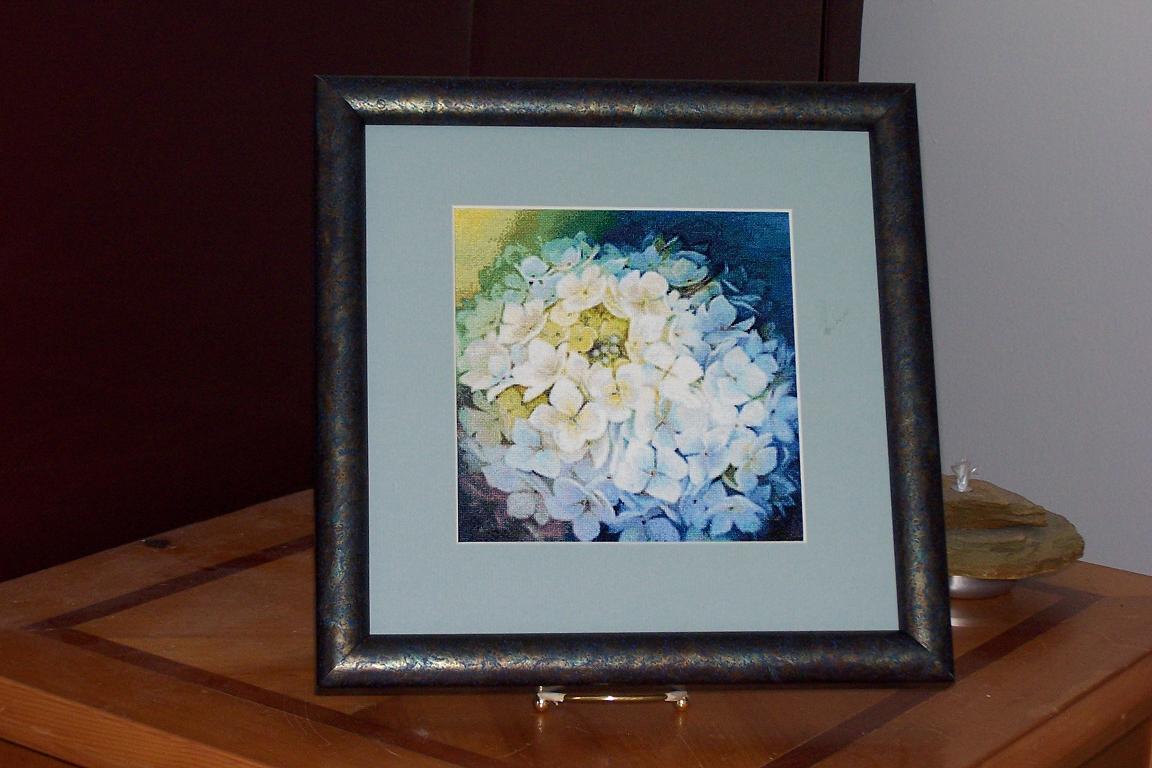 Давненько сюда никто не заглядывает. Рукодельницы, неужели все замерзли? :) Хотя я и сама как-то забросила все. Вот только довышивала гортензии и удосужилась сфоткать оформленные.