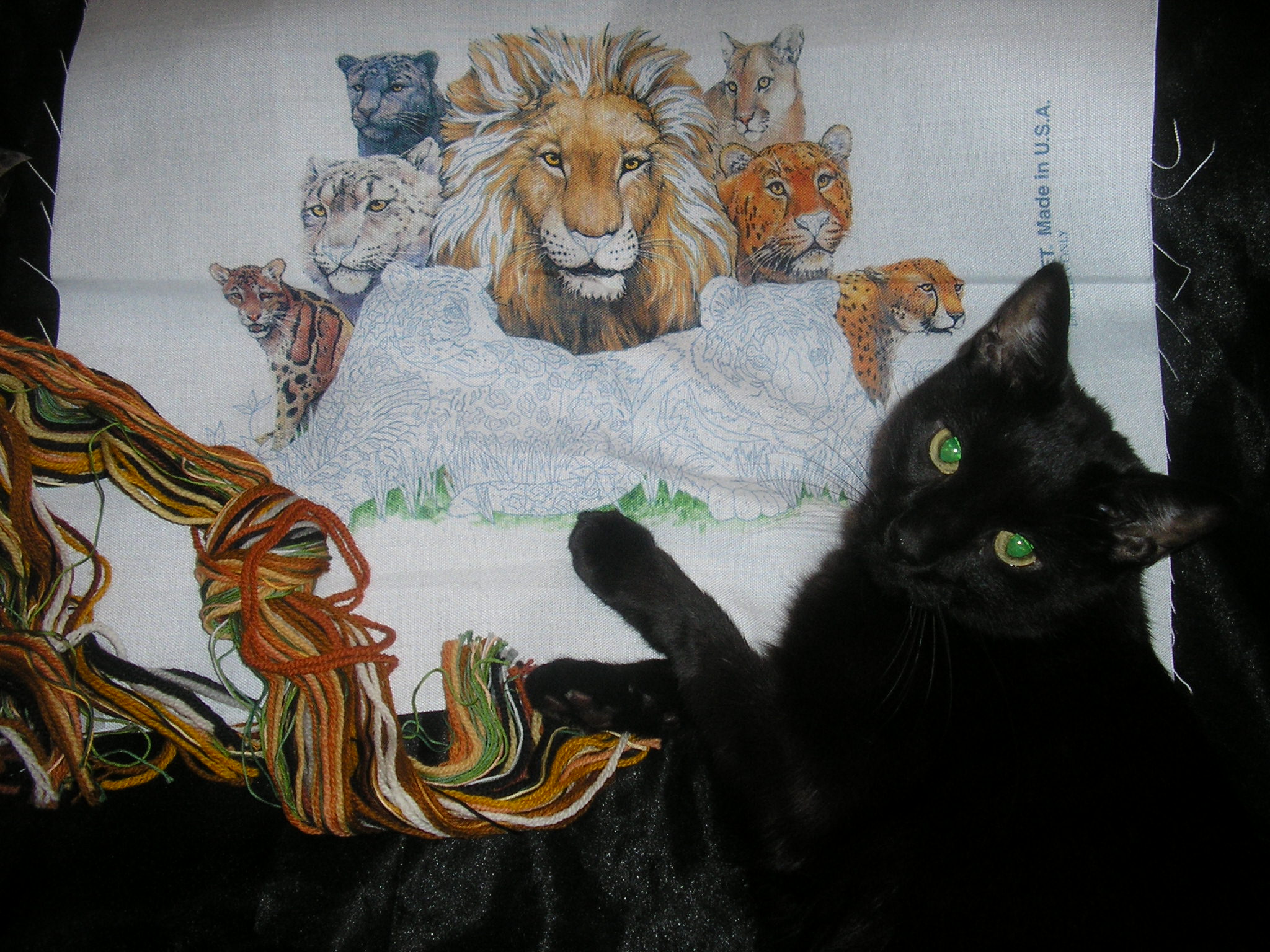 Девочки, умер мой котейка, 14 лет. Рак, 2 года по онкологам, глаз потерял, я писала здесь, на втором- операция-сохранили, вообшем отмучался. Многие не понимали нас, типа зачем лечить рак, мучить его, но есть новые способы лечения рака мелких клеток, это стоило того. Кстати, самый продвинутый вет-онколог в атланте, джорджия. Мы хотели клонировать, но кеартейкер ошибся, клетки нельзя в морозильник. Вообшем, у нас были сомнения, этического плана, сейчас есть опция хранения клеток, но не вышло. Он такой уникальный был! Он еше в ноябре умер, а я только сейчас о нем говорю. Вот за один день сшила его копию, свою кожанную юбку не пожалела, прям не хотелось ждать, вот такой красавчик сейчас на кровати.