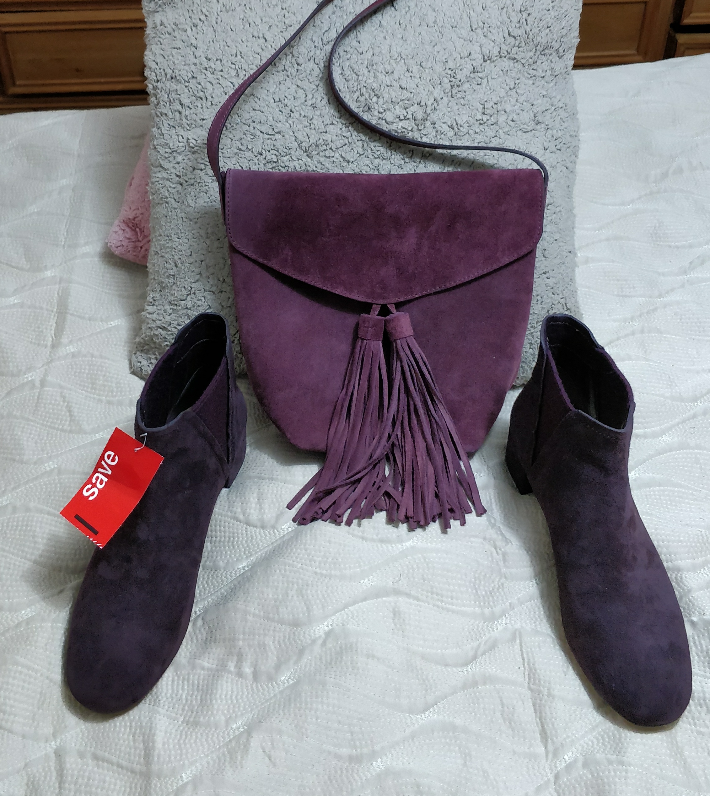 По-быстрому сфоткала сумку и боты. Цветопередача не на сто процентов точная,т.к.сумка не настолько розоватая в жизни, больше к maroon или как он там называется... Короче, это снято при искусственном освещении,так что может быть искажение цветовое