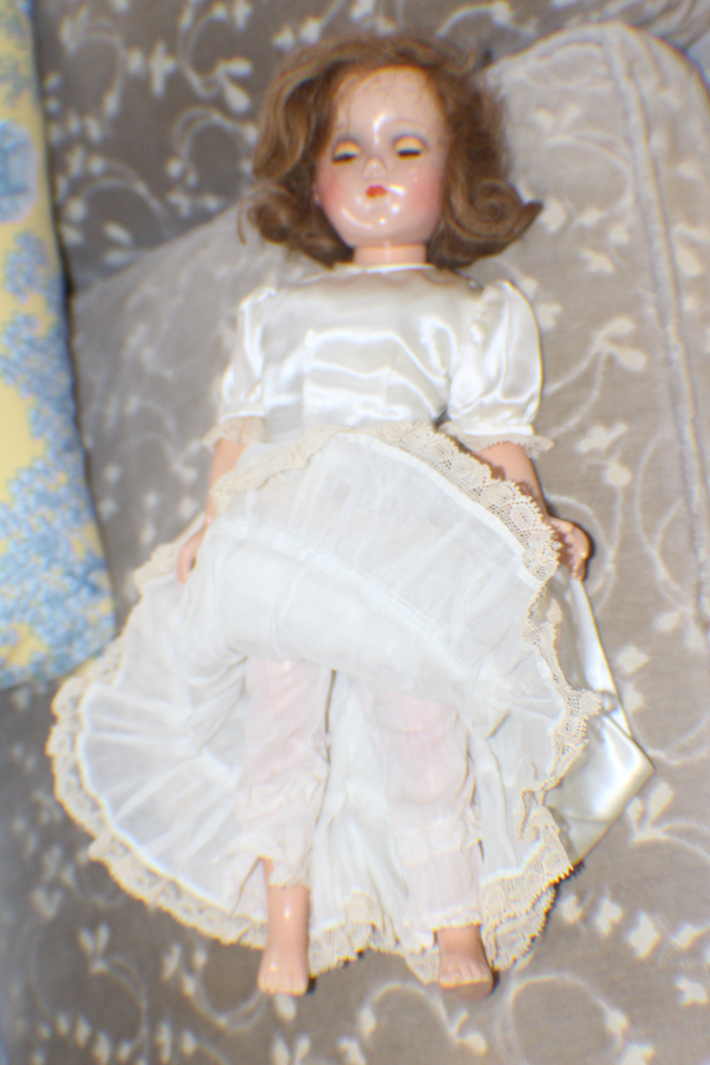 если еще интересно, то сфотаю сейчас пару, которых сама нашла и жутко торговалась. кукла настолько была грязная, что неприятно было в руки брать и волосы комком. говорю, сколько лет она у вас тут валяется и еще дольше будет валяться - вытащила не чуть ли не из груды мусора в копоти какой-то. платьице постирала, хоть и осторожно, но разлезлось. но оно и так в дырках было и такое грязное, что, наверное, все-таки, надо было стирать. у этих что я запостила просто пыльные а тут грязь но отмыла и пятна даже поотмывала и несколько дней волосы расчесывала но спасла и год под носком как шапочка находились зато теперь относительно прямы. теперь лежит ножки выпрямляет. наверное кукла 50-х Sweet sue до сих пор ходит.. на полусогнутых ногах