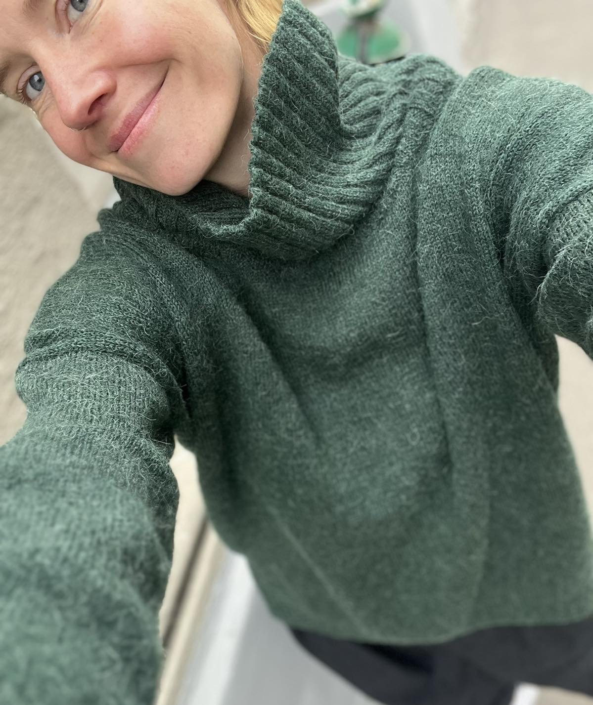 Похолодало, наверно, в Москве, дочь надела мой зеленый свитер, я вязала три года назад.