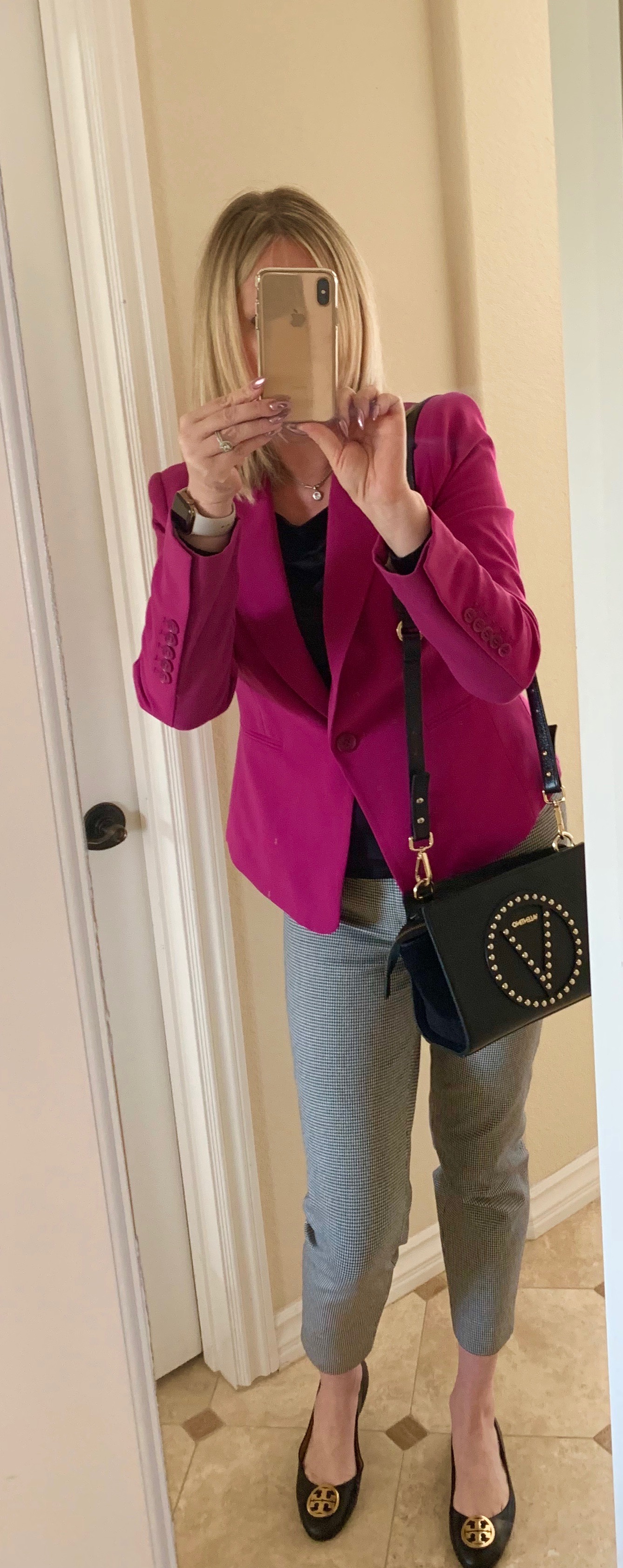 Стелл,фуксия пиджак супер. Но я согласна с Джоан туда бы сумку другую и было бы супер пупер