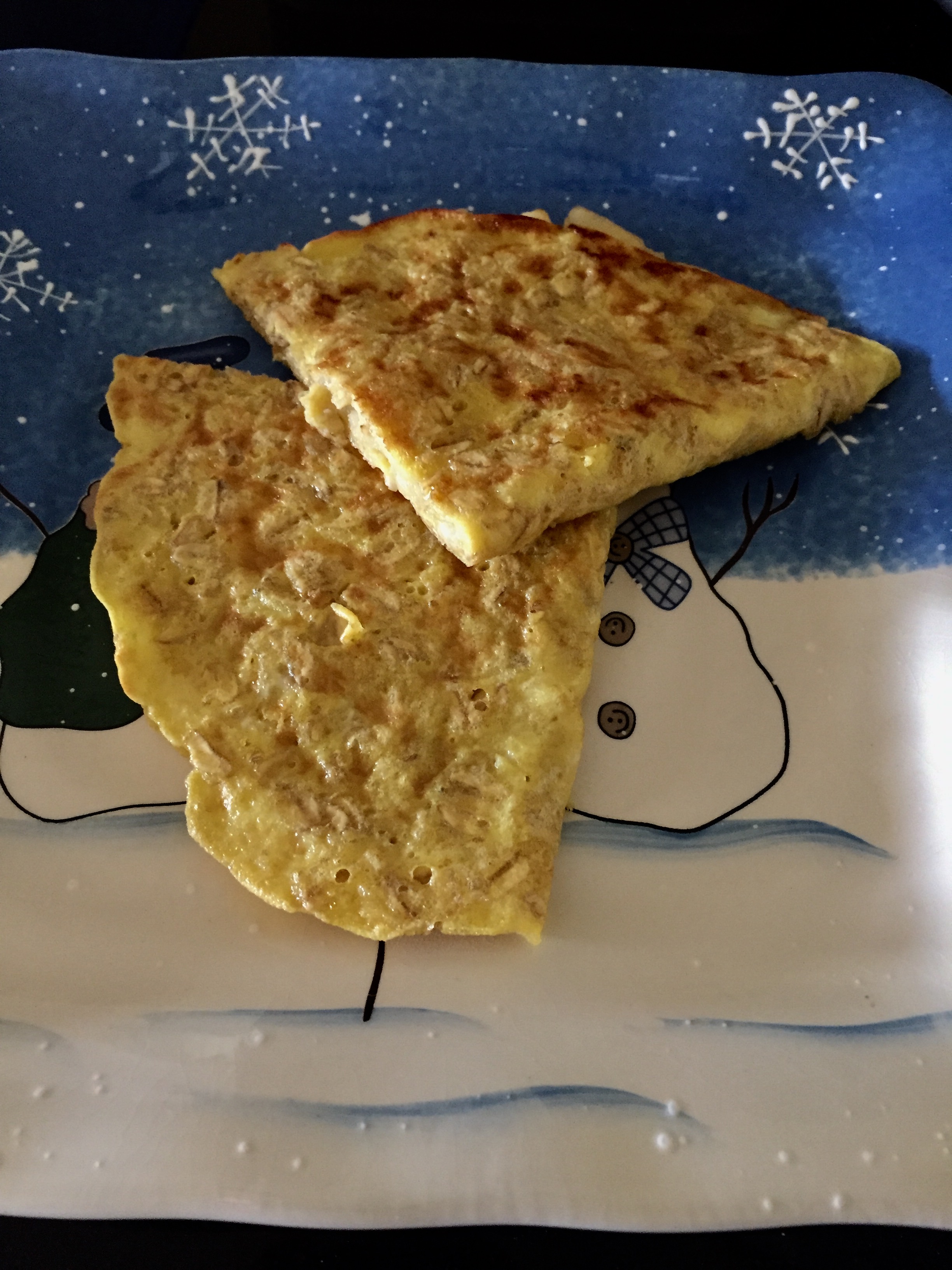 Рецепт 3 ст.л. овсянки замочить в небольшом количестве воды (может 3ст.л. воды). Отдельно взбить яйцо и потом перемешать с овсянкой. Жарить на сковородке на среднем огне минуты 4-5 на одной стороне. Потом на половину блина выложить тонко порезанные кусочки банана и накрыть второй половинкой блина. Ещё чуть чуть поджарить на обоих сторонах. Выглядит не очень, но вкусно. Банан можно заменить чем хотите.