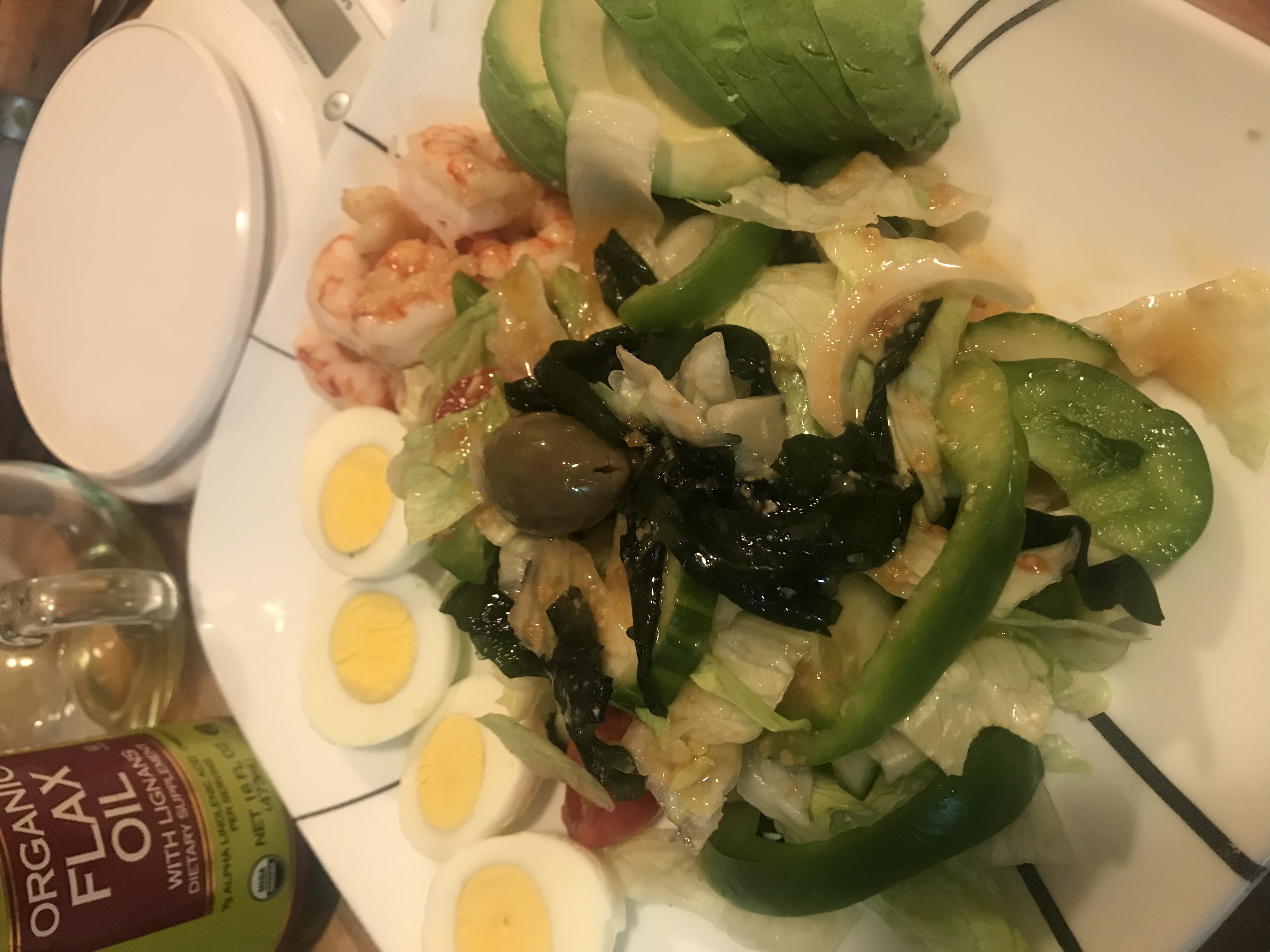 Не могу найти теперь где рецепты у нас по кето собираем? Сделала салатик с японскими нотками, дрессинг: мисо паста с подслатителем, кунжутное масло, флэк сид масло и уксус рисовый ( вкусный!) и водоросли. Mуж требует такой салат теперь каждый день, понравилось Полная импровизация но это - бомба! Каждый день такое хочу развожусь с борщом Раньше я мисо дрессинг с медом делала но с подсластителем ничуть не хуже! Еще добавила тартар порошка он дал кислинку нужную