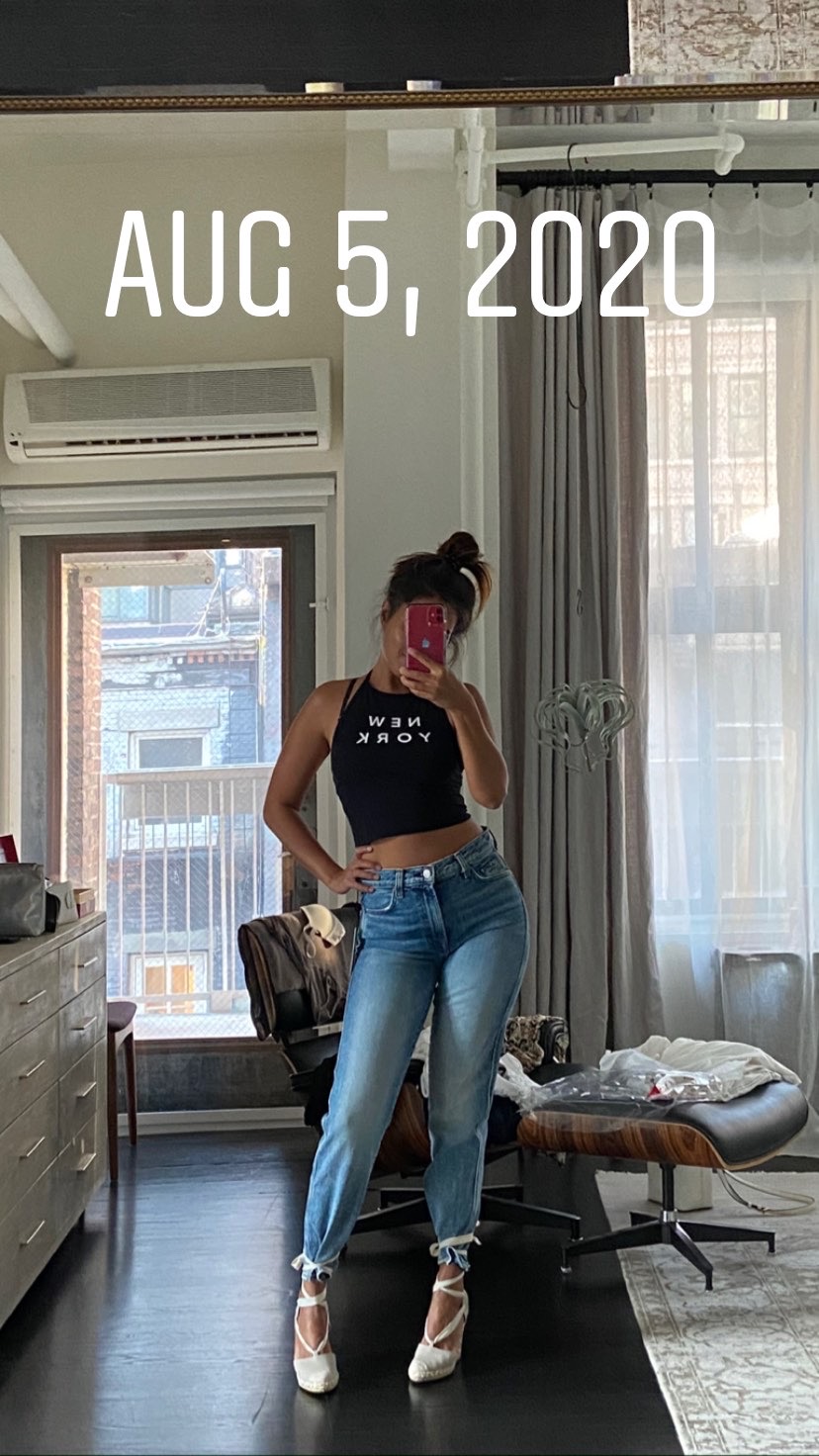 Про джинсы. Американская мечта начинается с пары голубых джинс, не так ли? Помните молодую Мадонну в клипе Papa Don’t Preach, и её голубые джинсы, и конечно красное платье и чёрную кожаную куртку...  Люблю. Все любят. Читая её и просматривая интервью, помню как она говорила что приехала в Нью Йорк с 36 баксами в заднем кармане ее голубых джинс...  И сразу всплыл её образ из Papa Don’t Preach...