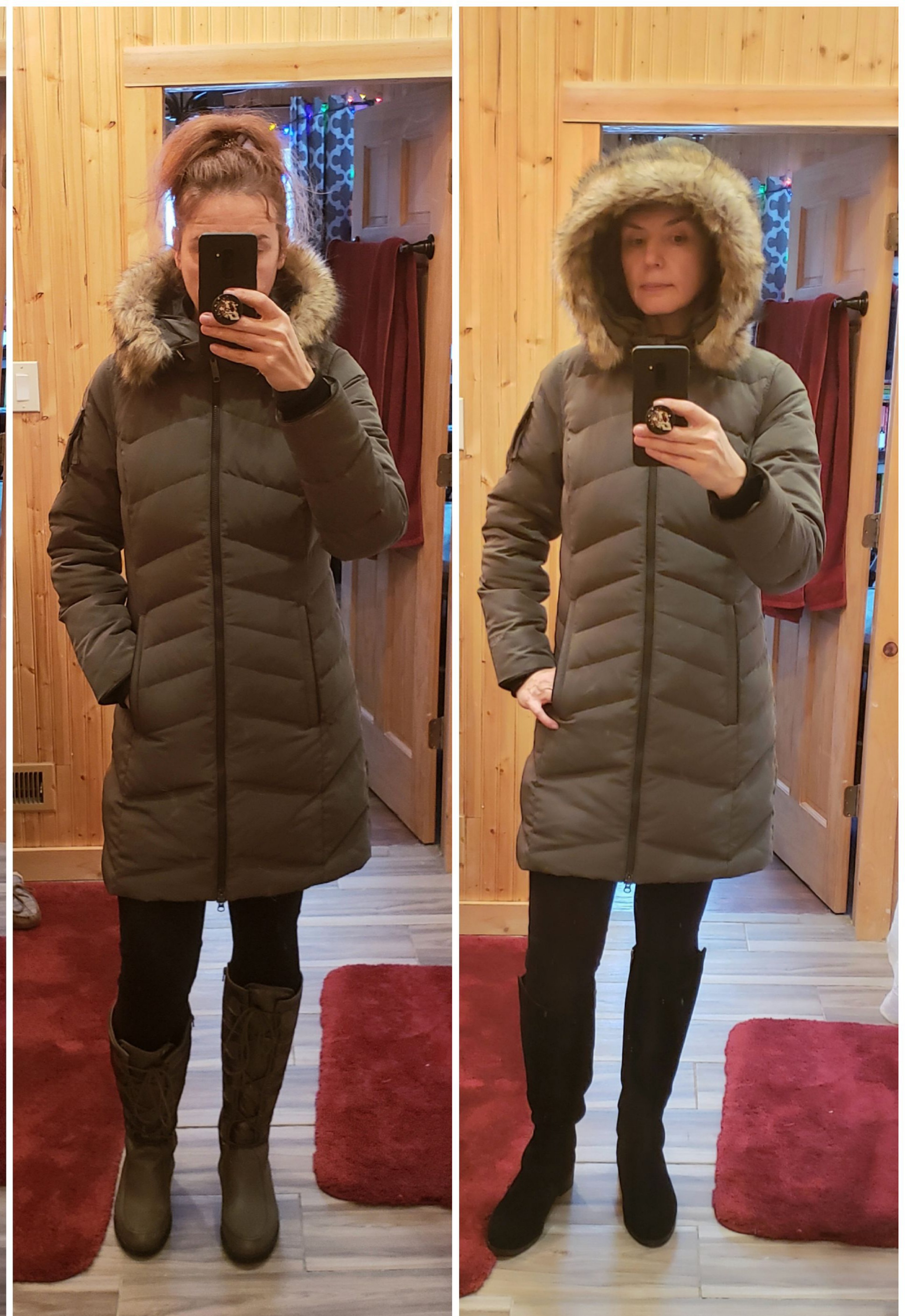 Получила свой пуховик. Очень довольна! И у меня к нему оказались "в закромах" matching boots (on the left).