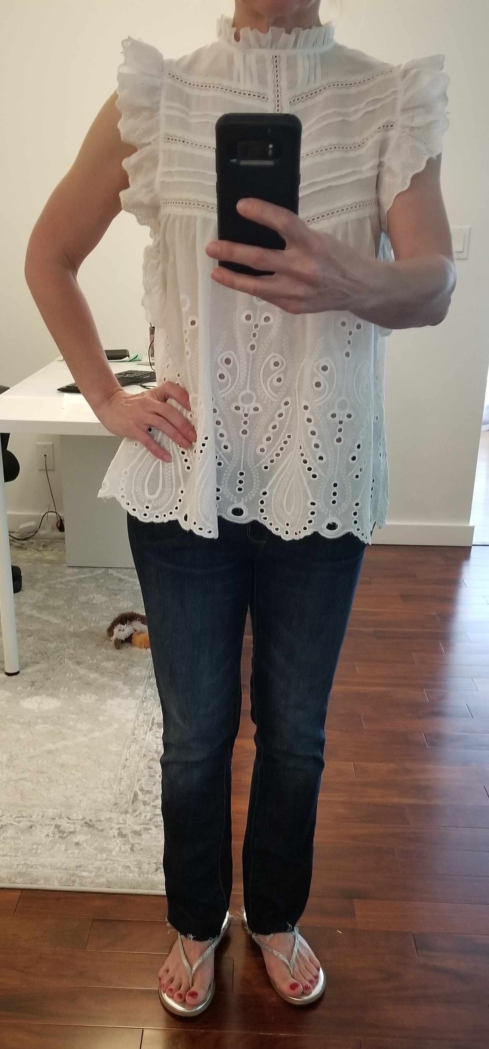 Топ ришелье и джинсы - люблю контрасты. Мучилась с ракурсом, чтобы горловину показать, совсем укоротились ноги :)