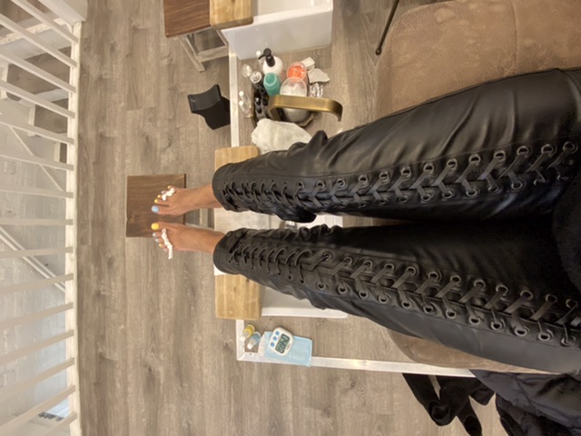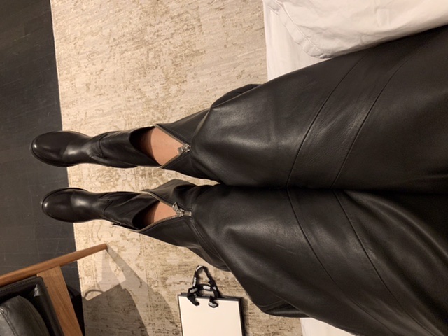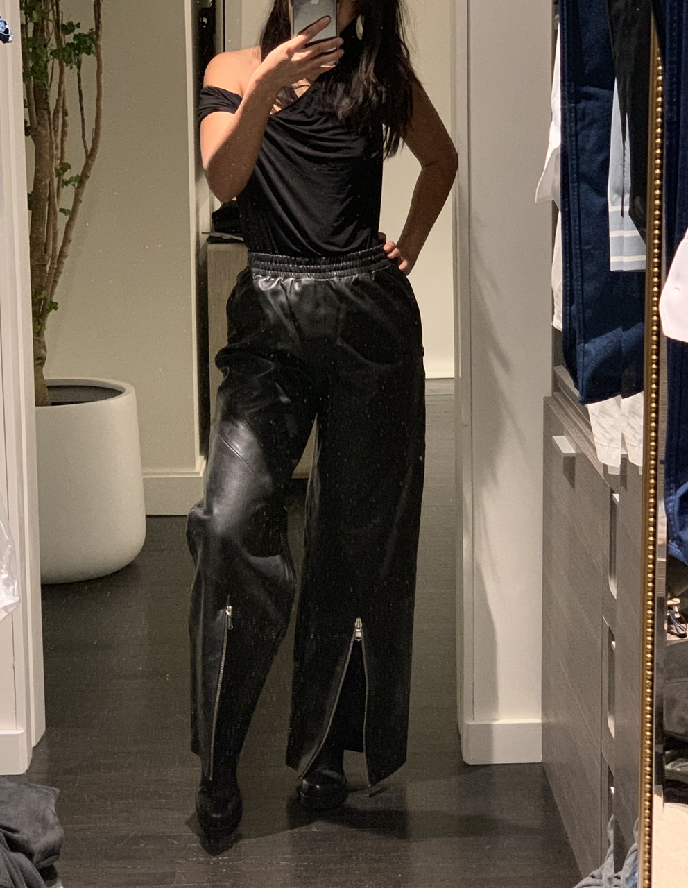 Вот так сидят кожаные широкие брюки. Обувь конечно играет большую роль. Chunky square medium heel.