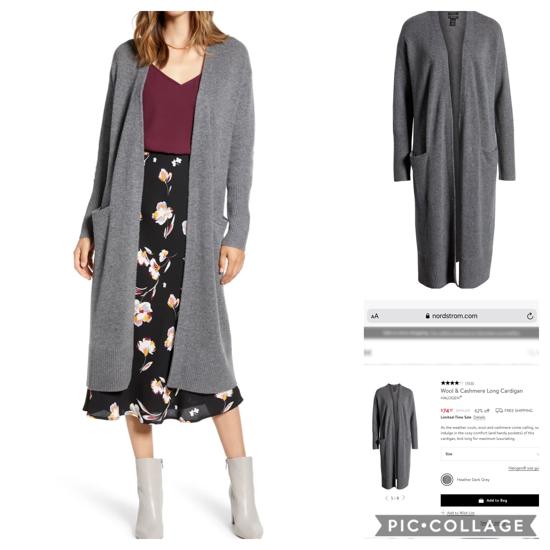 ПростоКваша писал(а): monaliza писал(а): этот присмотрела. Мне нравится что в составе есть шерсть. Оверсайзд, рекомендуют брать на размер меньше. Цвет мой, но хотелось бы что то мышиное или светло бежевое. Wool & Cashmere Long Cardigan HALOGEN® Price $74.17 Original Price $199.00 62% off 70% wool, 30% cashmere FREE SHIPPING Спасибо, классный и не дорого для кашемира/ шерсти. Заказала оливковый, там остатки на сайте, решила не тянуть и длина вроде подходящая хочу именно чтобы не ниже колена.