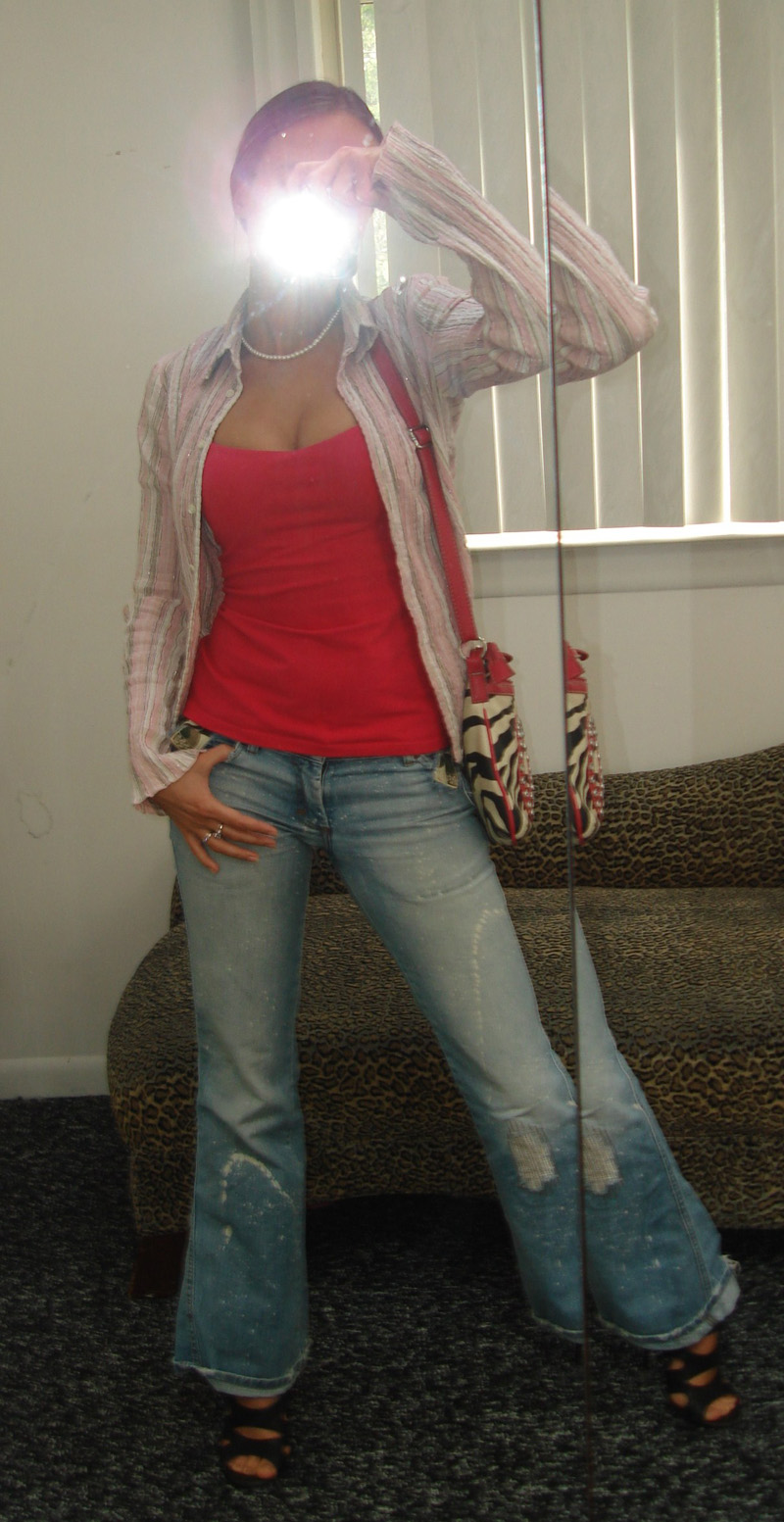 насчет пиджака.да он в стиле кисейна барышня изза рюшей. под него пойдет юбко тюльпан )..но я ненавижу такие фасоны юбок и нет ни однйо пары брюк(не ношу)так же как нет у меня пампс-не перевариваю их,вместе со скалой .так что был повод надеть пиджмак воти воспользовалсь.и каблуки не кайф.. вы считаете мне гражданство не дали из за моего аутфита? а седни тепло вот унас..почти 65 на ланч с мужем ходила эти джинсы у меня с 98 года) американ игл вроде.