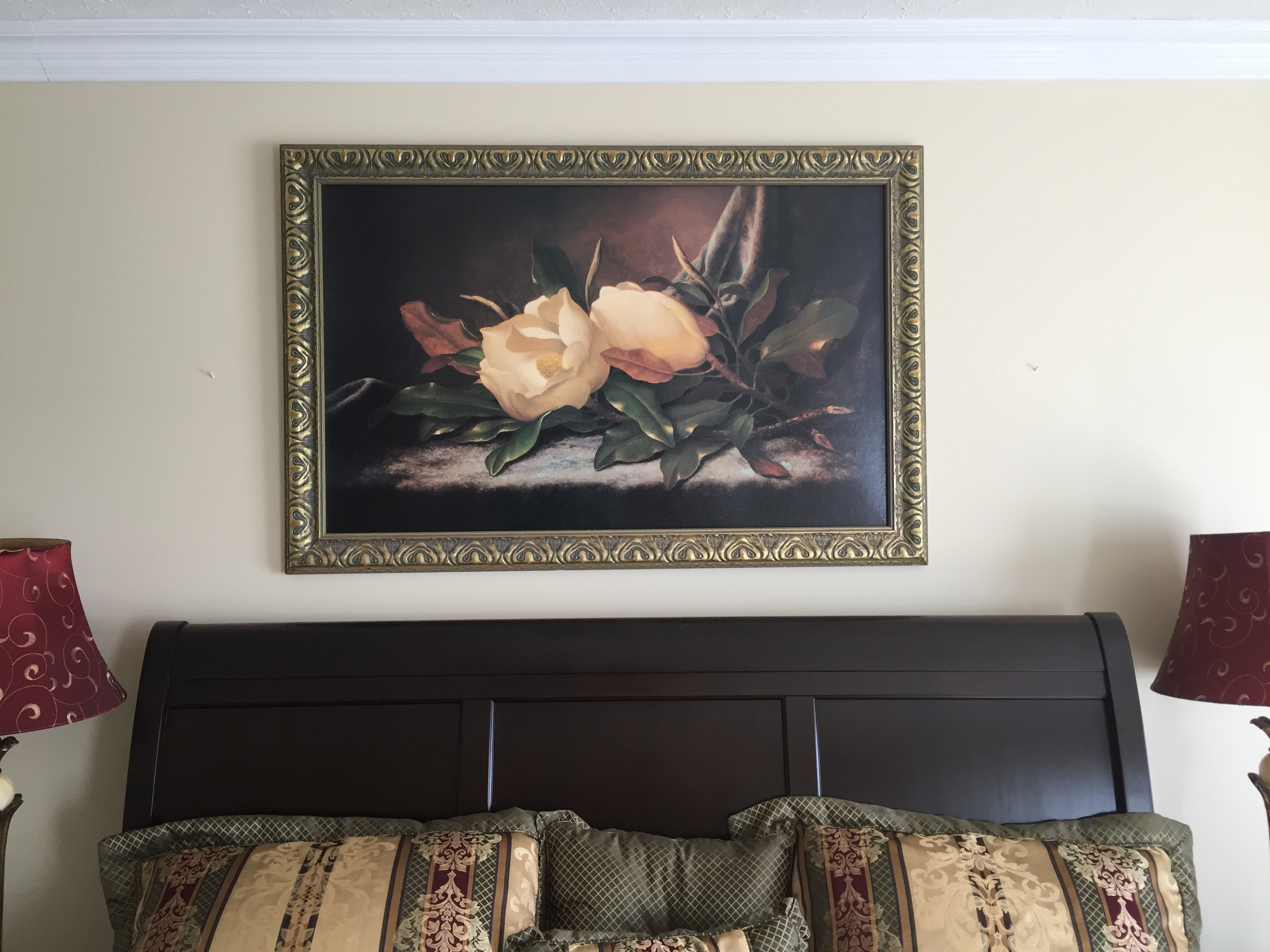 Вот сегодня купила, суббота день ярд сейлов . 10$ Рама конечно не дерево и не масло на холсте, но смотрится классно в спальне, как раз по стилю подошло
