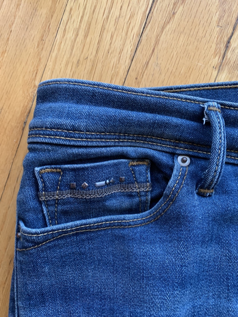 Mirabella, я тоже груша.  97 см в груди и 107 в бёдрах. В общем, "Здравствуй, сестра!" Пытаюсь бороться: рассказ в картинках. 1. Старые-старые джинсы Levi's на мне хорошо сидят. Я это обнаружила лет 20 тому назад, и с тех пор ношу их; то есть, одна пара снашивается, я покупаю другую такую же. Они всегда перевыпускаются, с небольшими изменениями. На тех, что ношу сейчас, даже стразы есть!