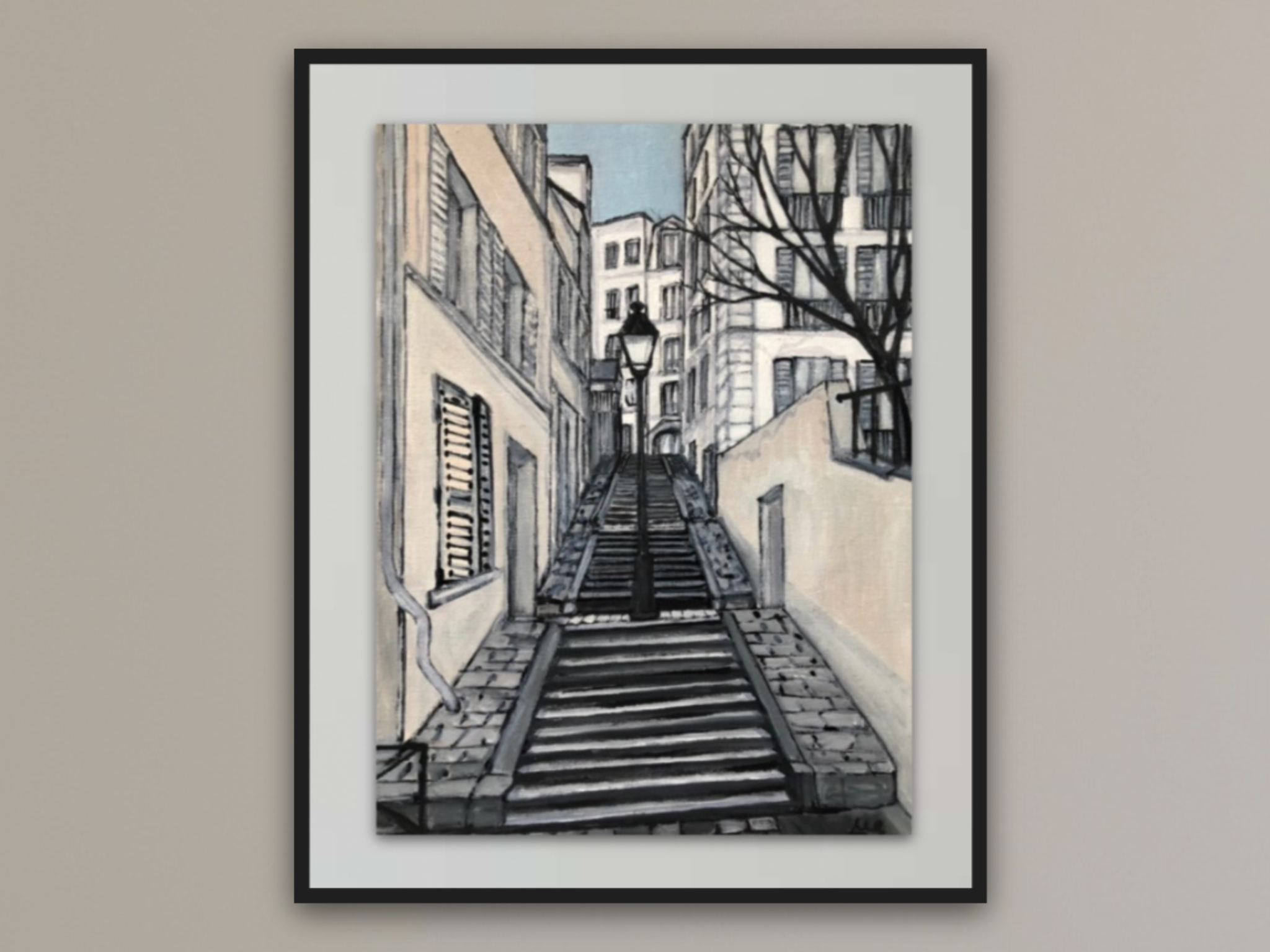 Начала очередное большое небо Парижа. А в перерывах, пока сохнет масляный слой, пишу небольшие картинки в продолжение темы. Монмартровская лестница.