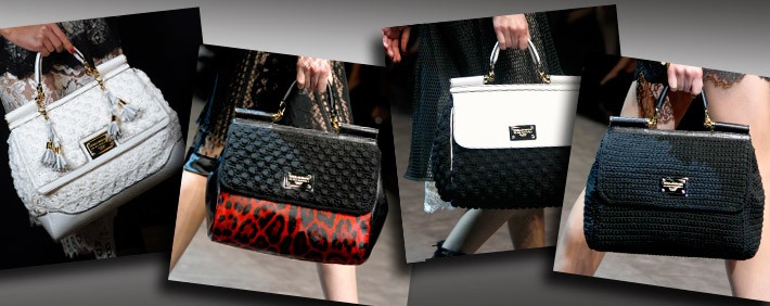 Простокваша, а где найти описание 1-й сумки, 4-й и последней с ваших фоток? Это всё с того сайта? Мне нравится Дольчегаббановская Мисс Сисили кроше...как-бы сообразить как её самой сделать Заметила, что вязаные сумки дороже смотрятся, когда есть кожаные детали, металлические, ручки-бамбук и сумки держат более менее форму, а не висят авоськой. Вот фотки Мисс Сисили: