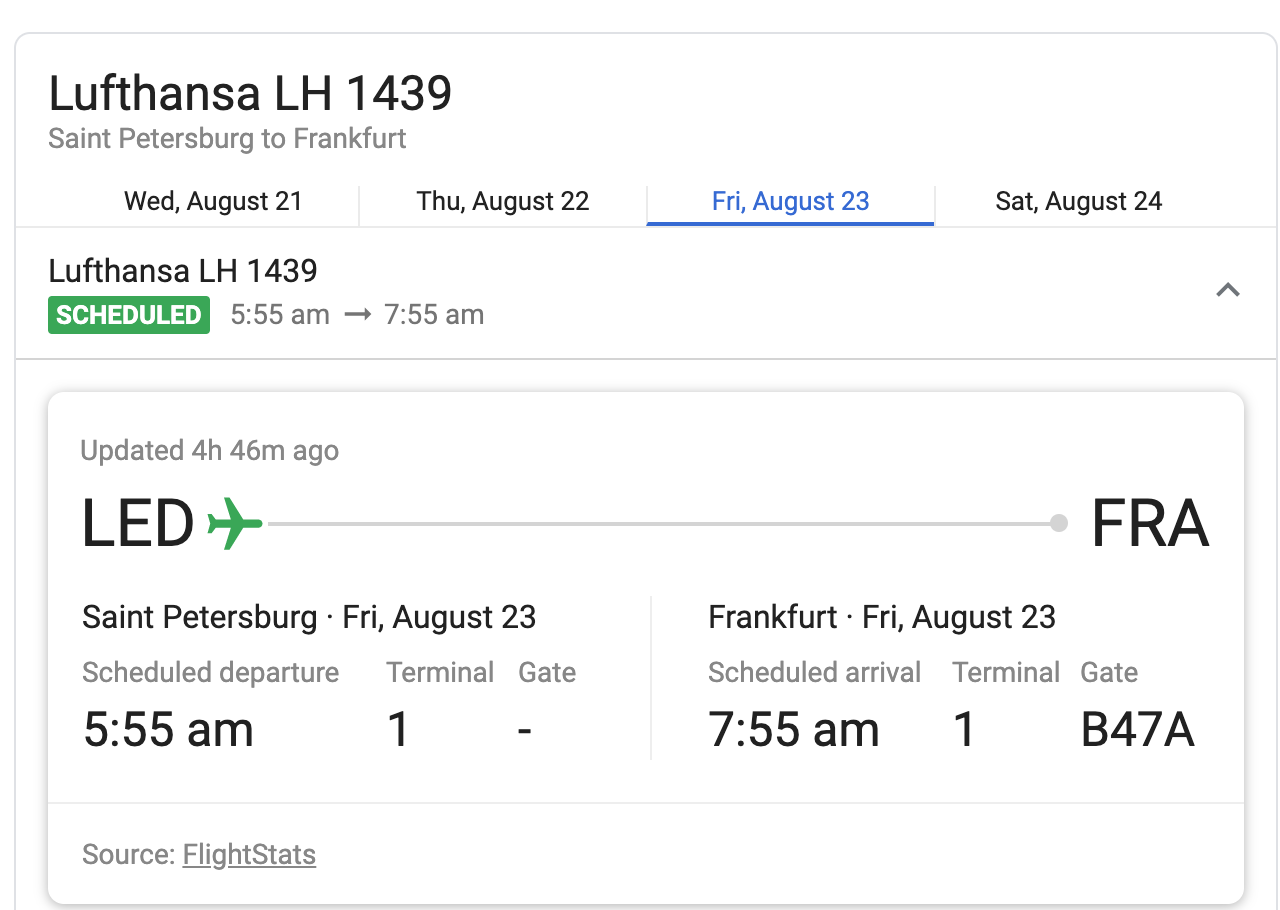 HELENKA писал(а): А узнать разные ли терминалы никак? Рейс Питер-Франкфурт-Остин Если знаете номер рейса, то можно погуглить, с Аэрофлотом такое проходит.