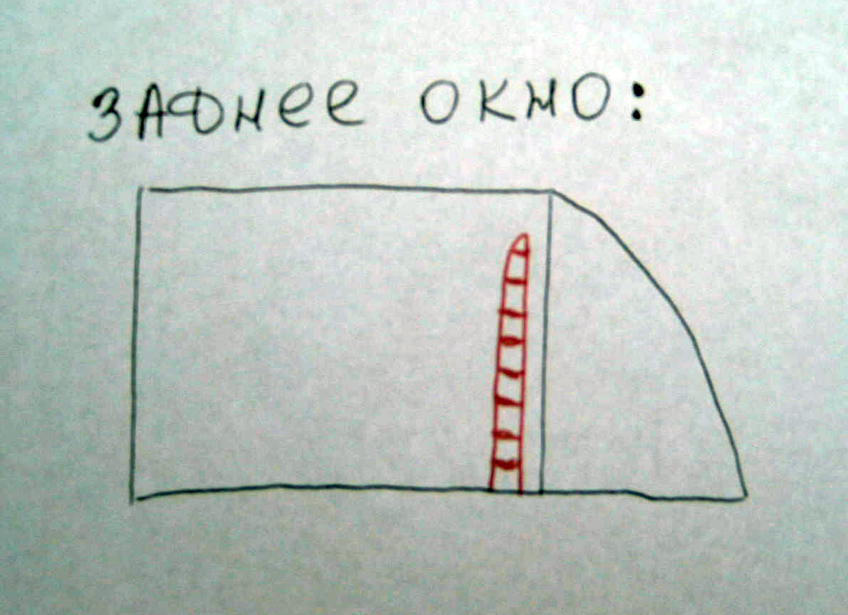 СОВЕТ: как только вы убедились, что столбик находится посередине вашего колеса, садитесь в машину и посмотрите, на этот столбик, посмотрите и запомните, где он находится относительно заднего окна вашей машины. То есть для теста вы будете ТОЧНО знать, когда вам остановиться. Например для габоритов моей машины Acura столбик "торчал из моего заднего окна" примерно так: