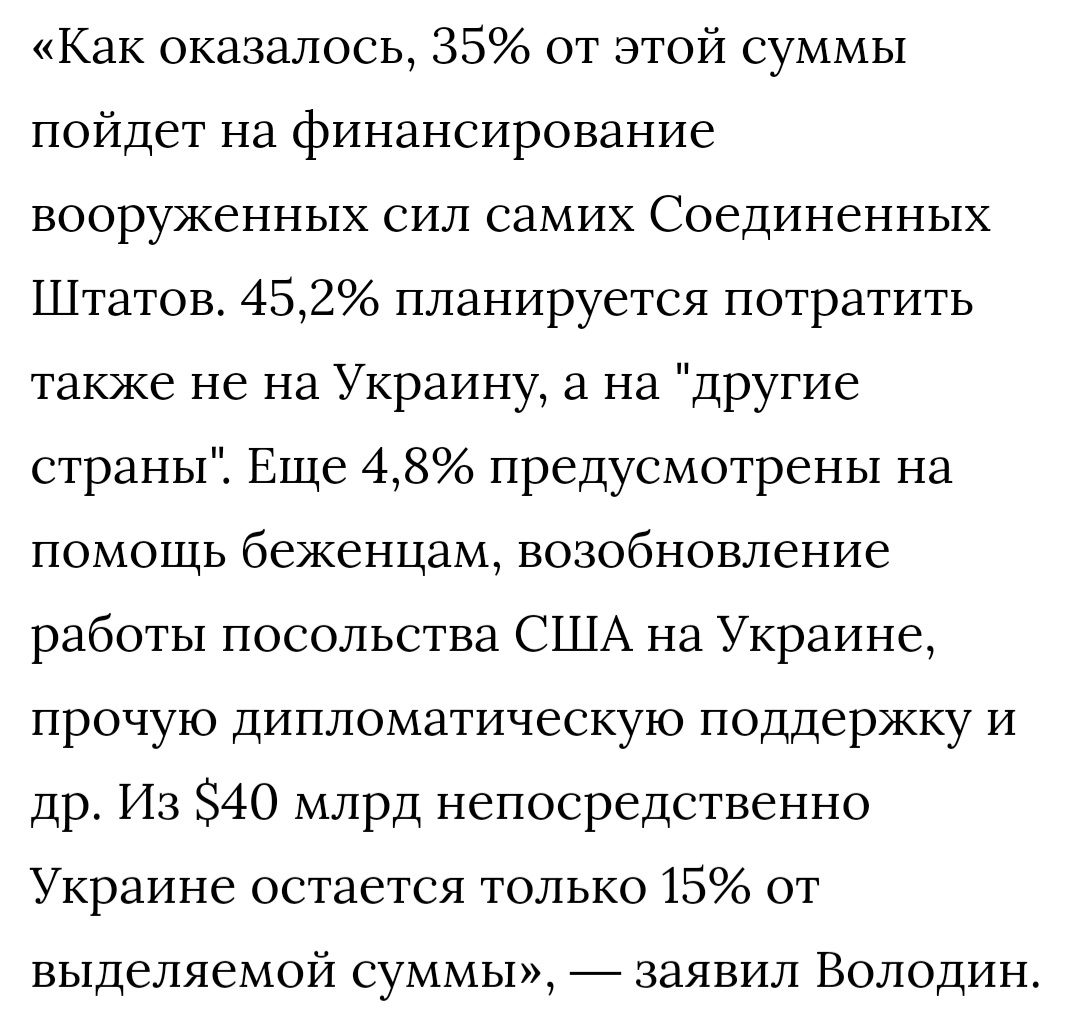 не ври, Украине не надо будет возвращать эту сумму! https://www.vedomosti.ru/politics/news/2022/05/24/923323-volodin-ukraine Если не знаешь то сиди и помалкивай ,а не суй свое "не ври" Чуть что-не ври. Врать это ваша прерогатива, бендеровская.