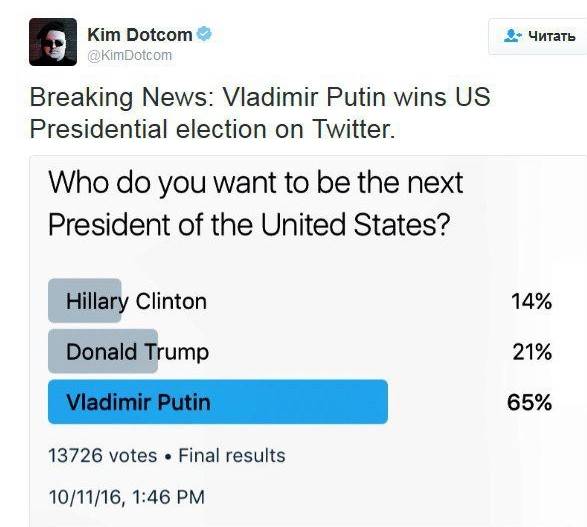 Nicole+ писал(а): Svetlaya писал(а): Да, вот так со стороны кто-нибудь неискушенный почитает новости штатовские - репы пишут, Клинтон -уголовный элемент, должна давно сидеть в тюрьме. Демы пишут тоже самое про Трампа. И одновременно выходит призывают идти голосовать за двух уголовников Где еще в мире есть такой дурдом? Ну уж точно не в России.. там ваш царек вас по миру пустит и подорвет на собственной бомбе,а вы все молиться на него будете..А касательно вашего коммента, да, некрасиво проходят выборы в Америке,правда никогда не бывает красивой,но это Америка и это называется свободой слова, самовыражения и голосования. За кого хотят за того и голосуют, что хотят то и говорят без страха попасть под уголовную статью за высказывание собственного мнение о президенте и его команде, а также за все что происходит в стране. В России за это убивают, как поступили с Немцовым или кормят полонием, как поступили с бывшим кгбэшником. Про якобы убийства политиками политиков в России и про бомбу, кибератаки -это все пустая болтовня без доказательств. Когда нет доказательств -нечего и обсуждать Из той же серии подкупленных мамзелей, рассказывающих о том, как Трамп трогал их за всякие места. ) А до этого молчали? ) И после этого кто-нибудт будет впредь верить новостям американской прессы? Это же типичный совок) Свобода слова -это хорошо, но когда страна теряет свое лицо в сплошном петеряхивании грязного белья, и журналисты врут напропалую -это уже совсем другое. Это печально, до чего мы здесь все докатились ( И мы здесь не про выборы в России, выборы там будут в 2018 году, тогда и поговорим. Мы говорим про выборы у нас здесь и сейчас -в США