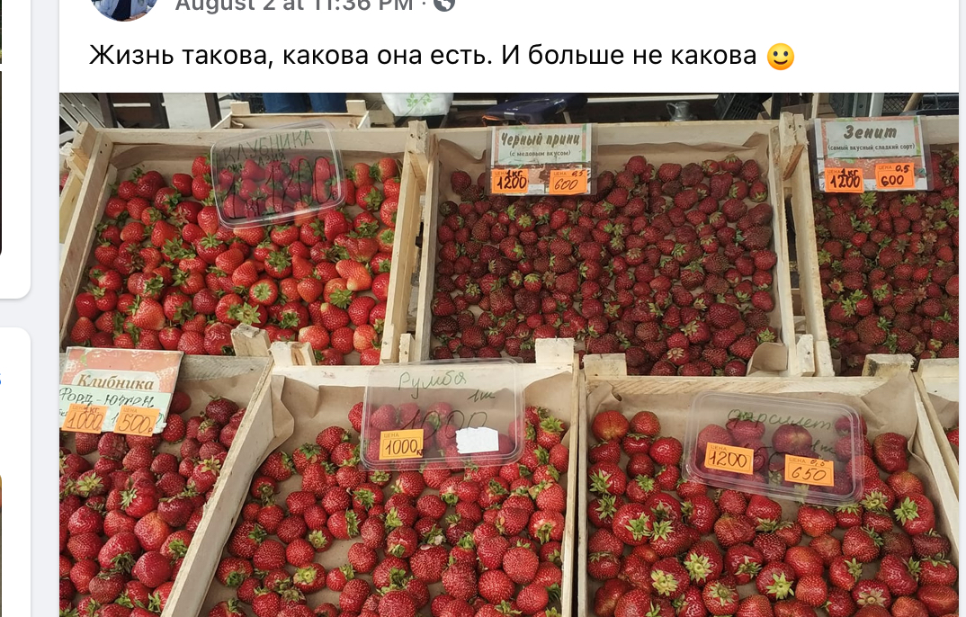 Клубника в России. В сезон, на рынке. Нормальные цены такие.