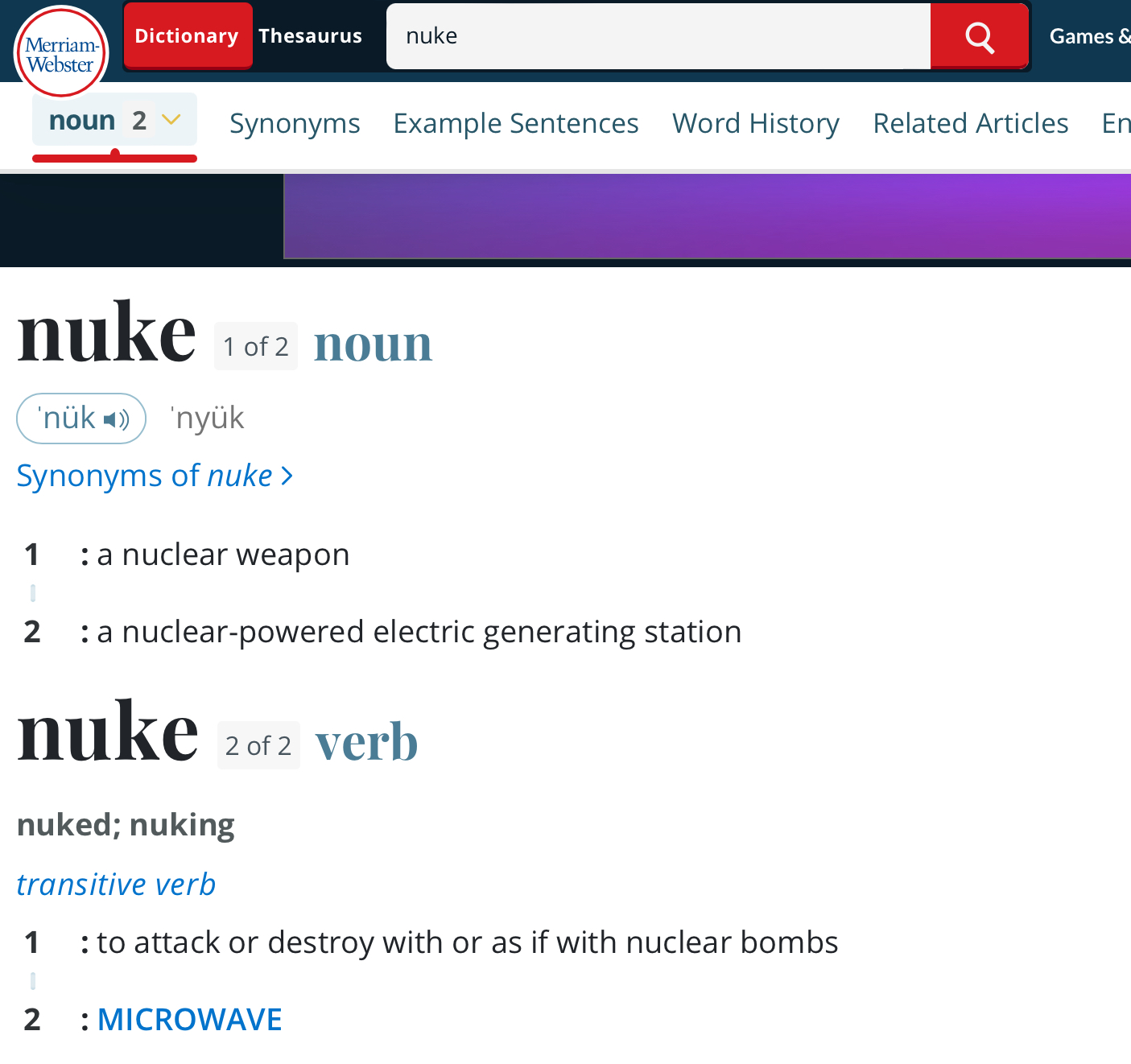 Бобов жрать меньше надо. Nuke, not nuc. A nuclear weapon Тупая. В словарь посмотрите. И бобовых поменьше, а то в бункере вонять будет.