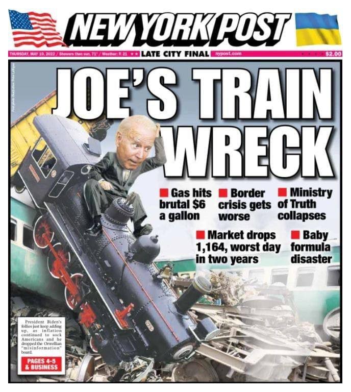 «Крушение поезда Джо: Бензин выше 6 долларов за галлон, кризис на границе, рынок пережил худший день за два года, катастрофа с детским питанием»: Байдену предлагают уйти в отставку уже на уровне американских обложек.