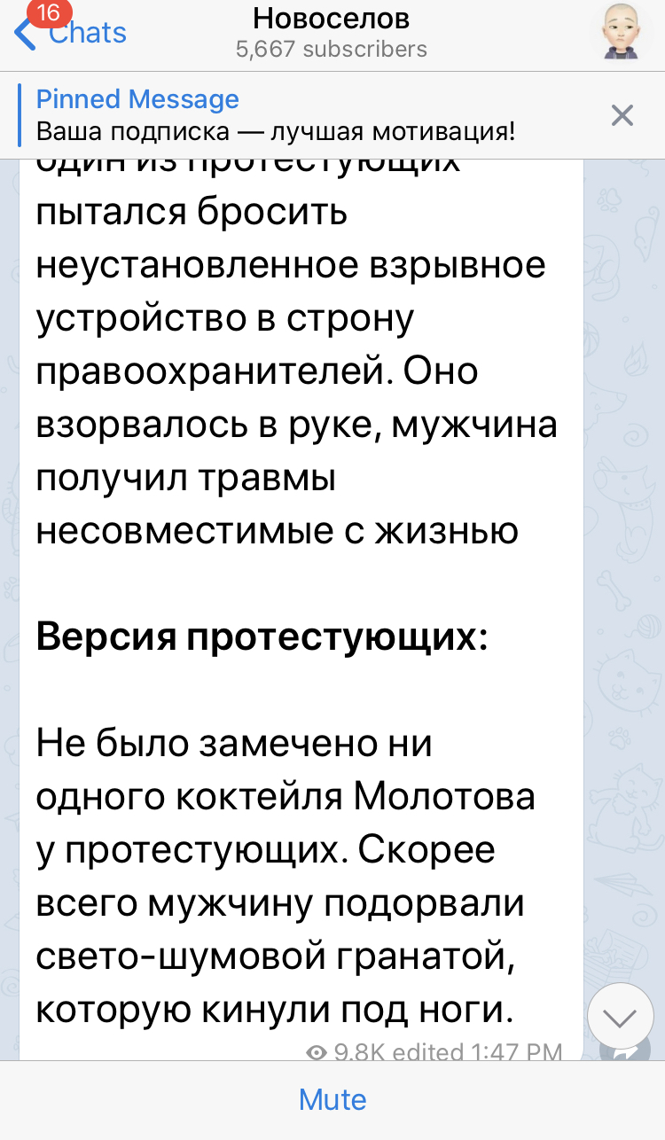 Volna писал(а): В телеграмм писали на каналах на которые я ссылки дала что ничего у него не было. Перед этим толпу обстреливали гранатами. Я нехта читаю в телеграм