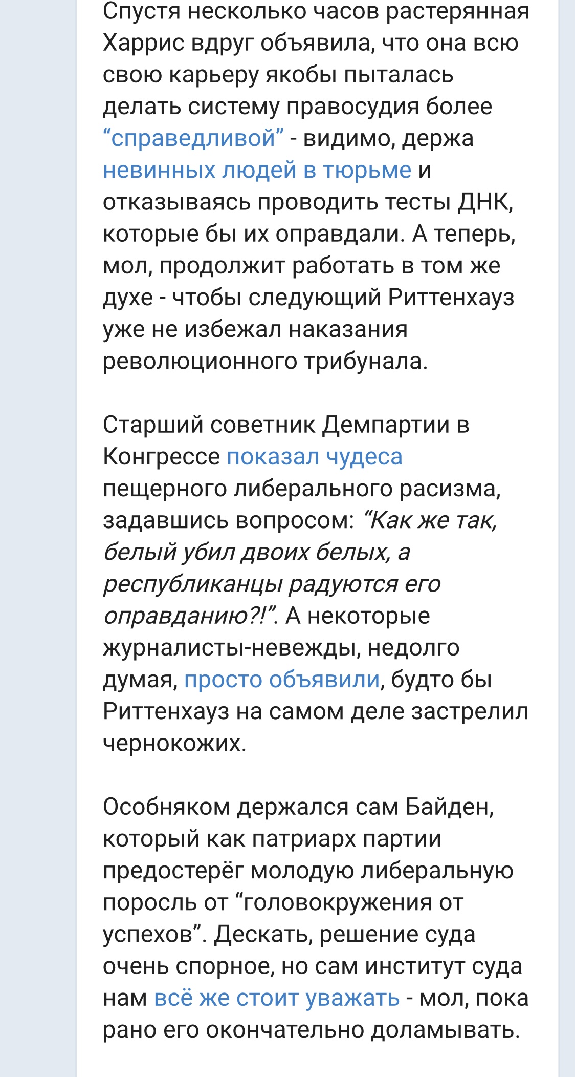 Joan_Goodman писал(а): NatMerren писал(а): Maribella писал(а): В деле убийства чернокожего молодого человека в Джорджии - только что вынесен приговор трём расистам - виновны по большинству обвинений!   но там прозрачный случай, не было сомнений, что так и будет. я не следила. если это Ахмат Арбери то это там же местная полиция вообще даже не хотела ничего расследовать. только под давлением практически мировой общественности пипец и после этого «много говорят об этом» Николь, вот пристрелили ублюдки молодого парня, за то что он осмелился выйти на пробежку. Между прочим чей-то муж и чей-то сын. А тебе «зачем об этом столько говорить» Так там власти вообще отказались судить убийц несмотря что было все на видео. Нет , не притесняют никого  офигеть Да при чем здесь этот кейс и высказывание Моргана о том, как прекратить расизм. Речь именно об этом шла. Слушайте его интревью по моей ссылке снова и снова, если не поняли смысл его слов. Что касается убийств, все убийства как черных так и белых расследуются в Америке, а не замалчиваются и суд решает по закону. По всем каналам и инету предают судебныз заседания, есть специальный канал Court TV, идите смотрите там не только кейсы черных рассматривают, почему вы все концентрируетесь только на убийствах черных белыми, а не черных черными, или белых черными, белых белыми. Это ли не расизм рассматиривать проблему так однобоко?Об этом и говорит реплика Моргана если вдуматься.Посмотрите в свою статистику, сколько там черных было убито черными и сколько белыми.Не надо подталкивать и запугивать суд и жюри беспределом, поджогами и мародерством! Пусть суд разбиратся в спокойной обстановке и принимает решение по закону, а не по политическим соображениям. Насточертели все все эти экстремисты как слева так и справа!И вообще, не нарушай закон,иди работай и не будет проблем с полицией.