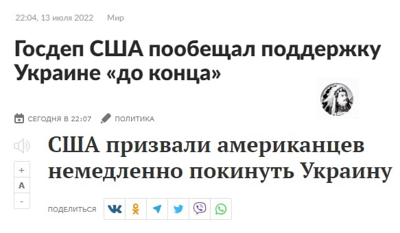 Круче Гуччи писал(а): Посольство Соединённых Штатов на Украине на своем официальном сайте опубликовало сообщение, в котором американских граждан в немедленном порядке призывают покинуть Украину. В частности, дипломатическое представительство вместе с этим рекомендовало соотечественникам воздержаться от участия в «организованных мероприятиях».