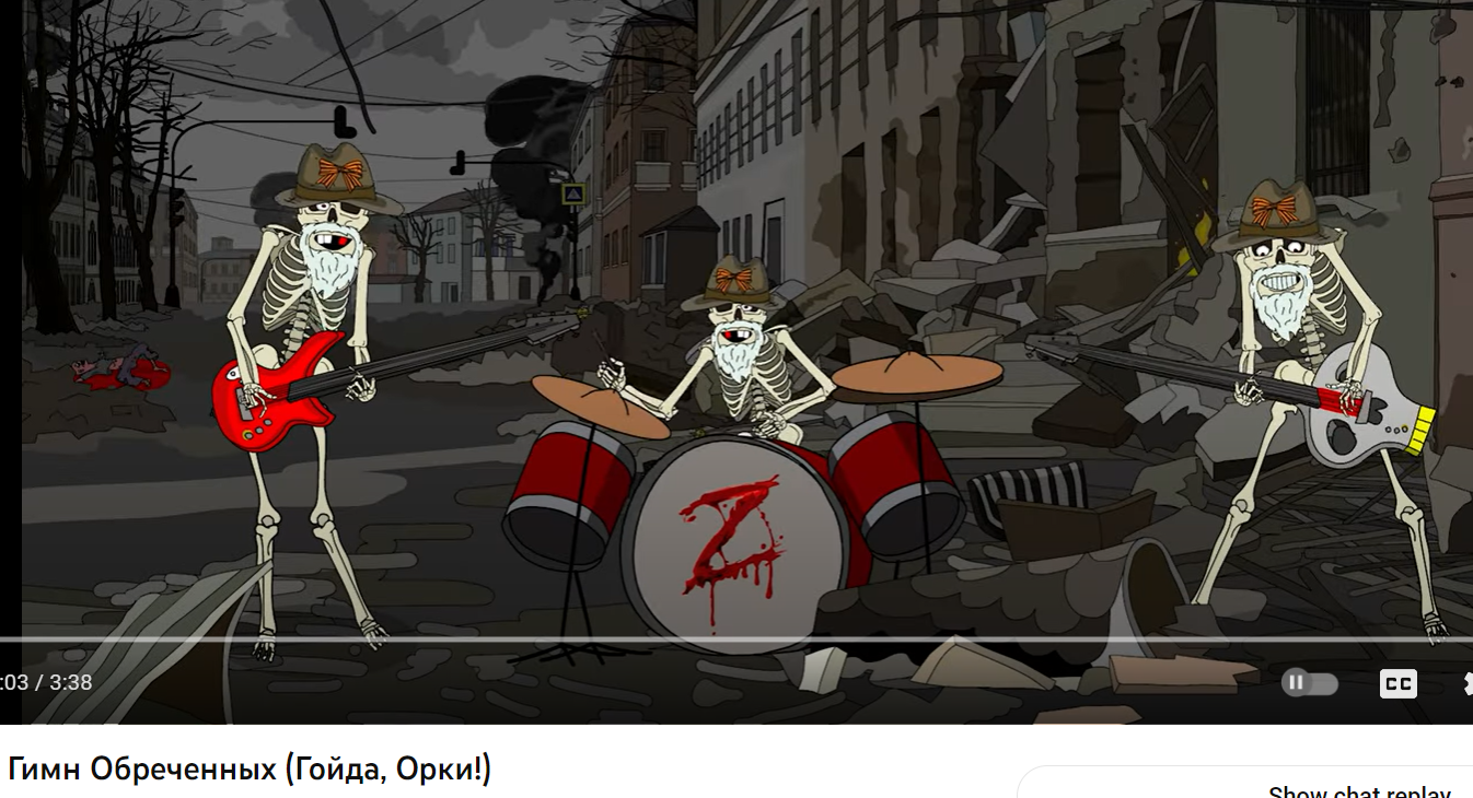 https://youtu.be/q07dm6lPs2k Я тоже только что прослушала и рекомендую всем рашисткам этого форума выучить слова Пусть маршируют под этот гимн! Гойда, Орки!!! Гимн обреченных Содом с Гоморрой пришли в Москву. В тот город, где я больше не живу. По локоть руки давно в крови У этих вурдалаков на TV. Смотрите! Орки! Орки! Орки! Орки мочат корки! Путь обреченных, Поезда заключенных, Племена отреченных, «Новичок» в труселя! Смех прокаженных, Маски лиц искаженных, В сладкий сон погруженных, И сырая земля. Гойда, орки! Гойда, орки! Гойда, орки! Гой-да-да! Гойда, орки! Гойда, орки! Гойда, орки! Гой-да-да! Пускаем газы и нефть бурим. Пусть курит Третий Рейх, мы - Третий Рим! Решит начальник за нас с тобой, Кто грузом 200 полетит домой! Смотрите! Орки! Орки! Орки! К нам спустились с горки! Путь обреченных, Поезда заключенных, Племена отреченных, «Новичок» в труселя! Смех прокаженных, Маски лиц искаженных, В сладкий сон погруженных, И сырая земля. Рычат в лесах шаманы, Бурлят в котлах дурманы, Уходят караваны на Западный Кордон. Танцуют скоморохи, Чтоб не скучали лохи И мчались в караоке встречать Армагеддон. Гойда, орки! Гойда, орки! Гойда, орки! Гой-да-да! Гойда, орки! Гойда, орки! Гойда, орки! Гой-да-да! Путь обреченных, Поезда заключенных, Племена отреченных. «Новичок» в труселя! Смех прокаженных, Маски лиц искаженных, В сладкий сон погруженных, И сырая земля. Гойда, орки! Гойда, орки! Гойда, орки! Гой-да-да! Гойда, орки! Гойда, орки! Гойда, орки! Гой-да-да!