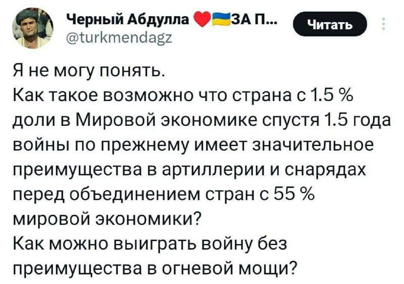 Baylee писал(а): 140К и так дрейфят перед 5К... ох май Кстати, для тренировки усыхающего мозга (ну, чтобы притормозить процесс) можно поизучать опыт ВО в сирийском регионе.Хотя да, прошу многого... Ну, тогда можно найти хорошего военного аналитика, который объяснит, как 5К могут очень быстро превратиться в гораздо большую по численности группировку  Сирийский опыт говорите? Это как в 2018 году под Дейр-эз-Зором? Когда за пару часов американцы уничтожили более 200 вагнеровцев и кучу сирийских военных заодно, которые хотели отжать НПЗ? Поизучайте сама, вам будет полезно. С НАТО хотите повоевать? Ну-ну...
