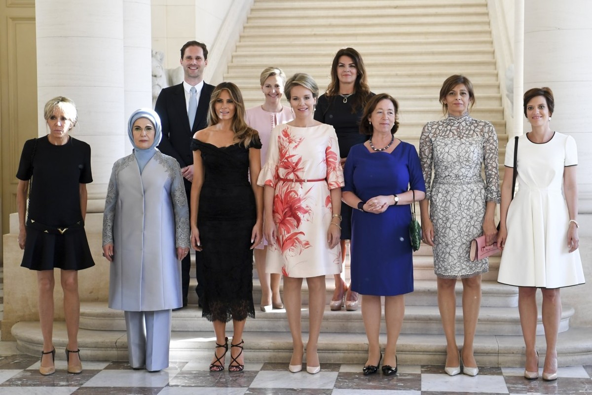 https://lady.mail.ru/article/495467-mel ... hit-trone/ В Брюсселе вечером 25 мая прошла встреча первых леди: жены президентов США, Франции, Турции, Словении, Бельгии и других стран пообщались во дворце Лакен, пока их мужья принимали участие в саммите НАТО. Дворец Лакен является резиденцией бельгийской королевской семьи.