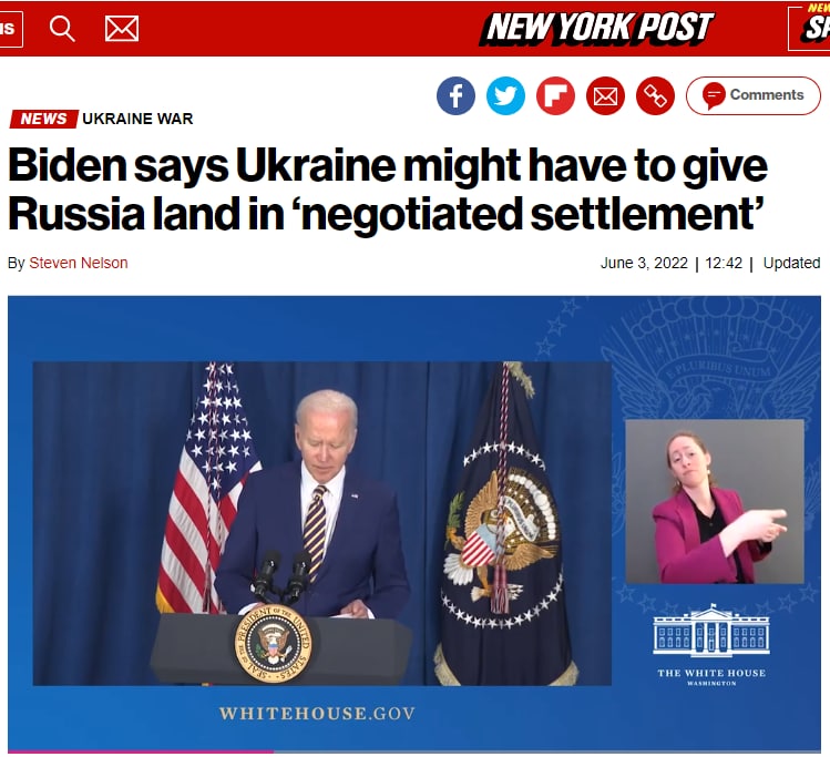 Байден открыто заявил, что Украине возможно придётся отдать России территории в случае переговорного урегулирования - NYP