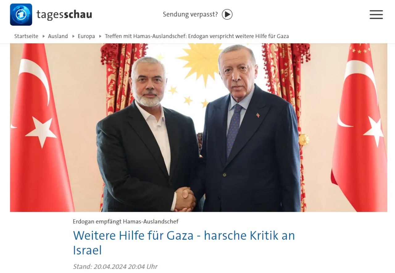 Согласно Тагесшау, Эрдоган теперь считается сторонником движения ХАМАС.