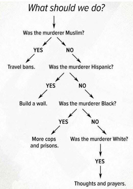 Panna писал(а): Where are "good guys" with guns in Texas??? Two weekends in a row. Less than a week from last Sunday. In a very public place. Can happen anywhere in any community now. И это все молодые белые националисты, слушающие болтовню нашего лидера, a этот из Далласа приехал пострелять https://www.motherjones.com/politics/20 ... full-data/