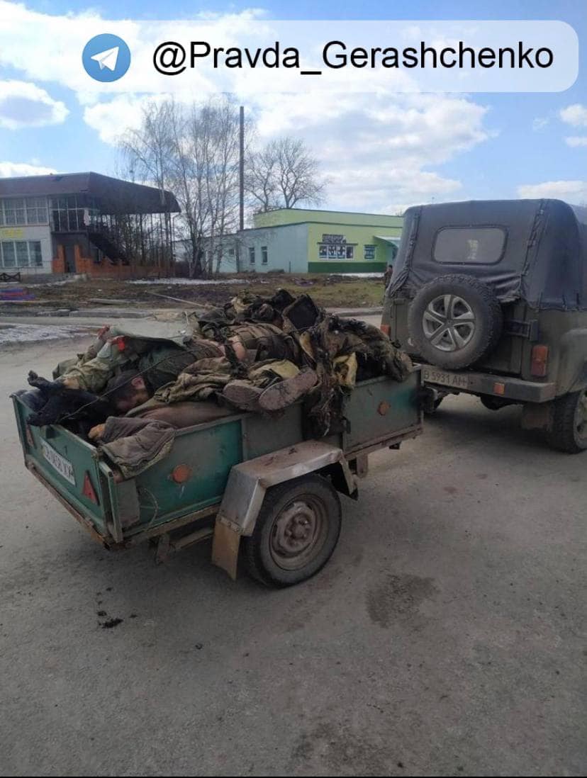 Вот так вот селяне собирали трупы русских в окрестностях чёрниговских сел Новая Басань и Новый Быков в начале апреля. В этой местности огромная группировка оккупантов численностью до 10 тысяч человек и 2 тысяч единиц техники была целый месяц заблокирована из за своевременного взрыва мостов через реку Трубеж. Каждый раз когда они пытались навести переправы на заболоченных берегах Трубежа, их ебашила наша Авиация и артиллерия. А их техника вязла в украинских черноземах и болотах в пойме реки. Сама Мать Природа вместе с нашими Героями сберегла Киев, Бровары, Борисполь от судьбы Бучи и Ирпеня. После нашей Победы, мы разрешим русским приехать и раскопать под нашим контролем братские могилы, куда вот так вот, как показано на фото, на прицепах, на которых раньше возили свиней на убой, свозили для захоронения тех кого Путин послал к нам на верную гибель.