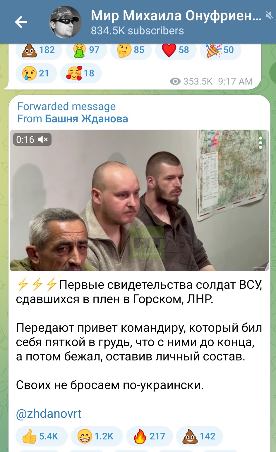 Из телеги Михаила Онуфриенко: Боевики "Айдара" на заводе "Азот" в Северодонецке заявили о готовности сдаться
