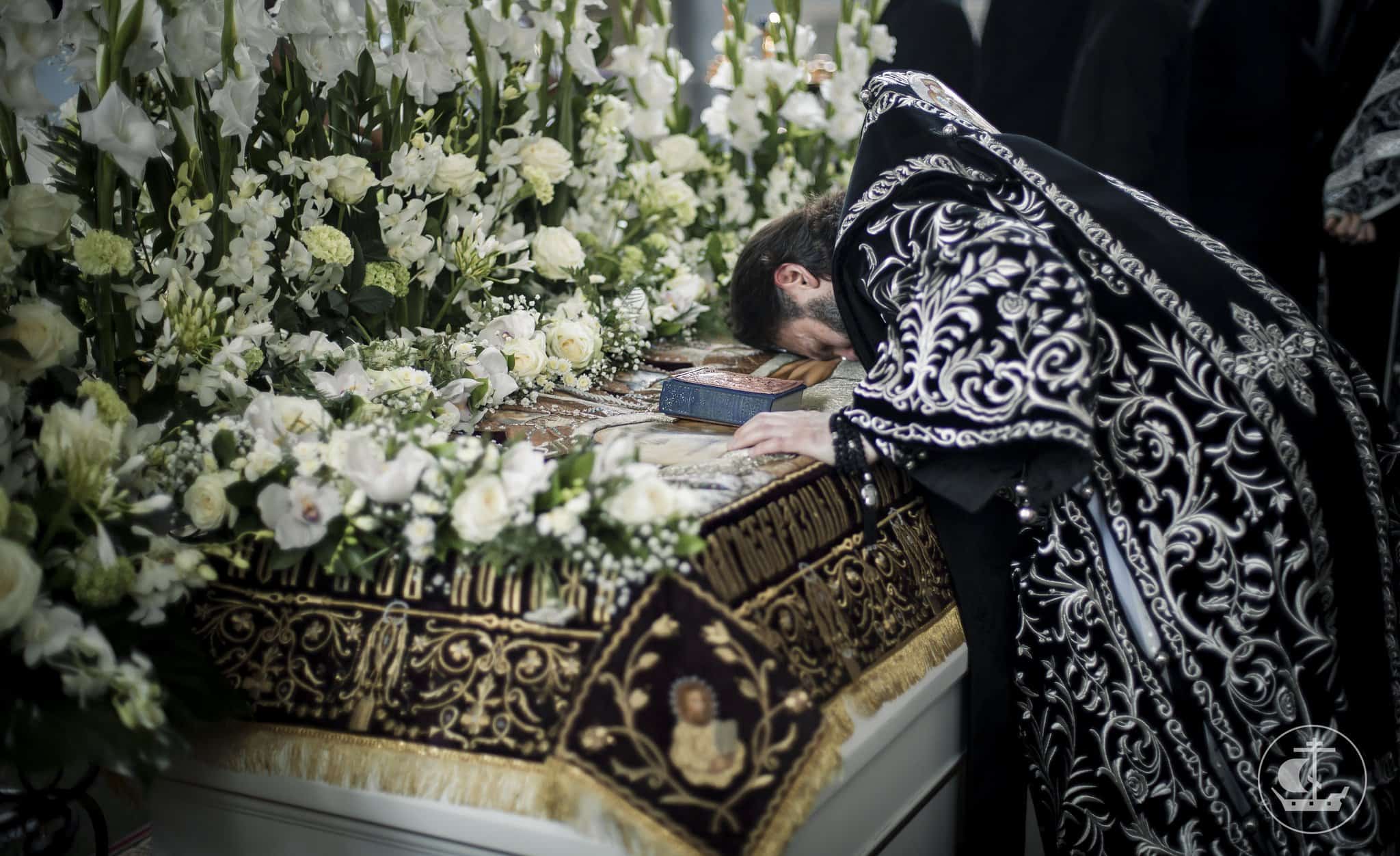 Песнопения Вечерни Великой Пятницы посвящены страданиям и смерти Христовым. После малого повечерия с чтением канона о распятии Господнем и на плач Пресвятой Богородицы – во время службы утрени Великой Субботы совершается Крестный ход с пением погребального «Святый Боже…»: Святая Плащаница обносится вокруг храма. По окончании чина погребения Плащаница полагается на середину храма для поклонения священнослужителей и богомольцев.