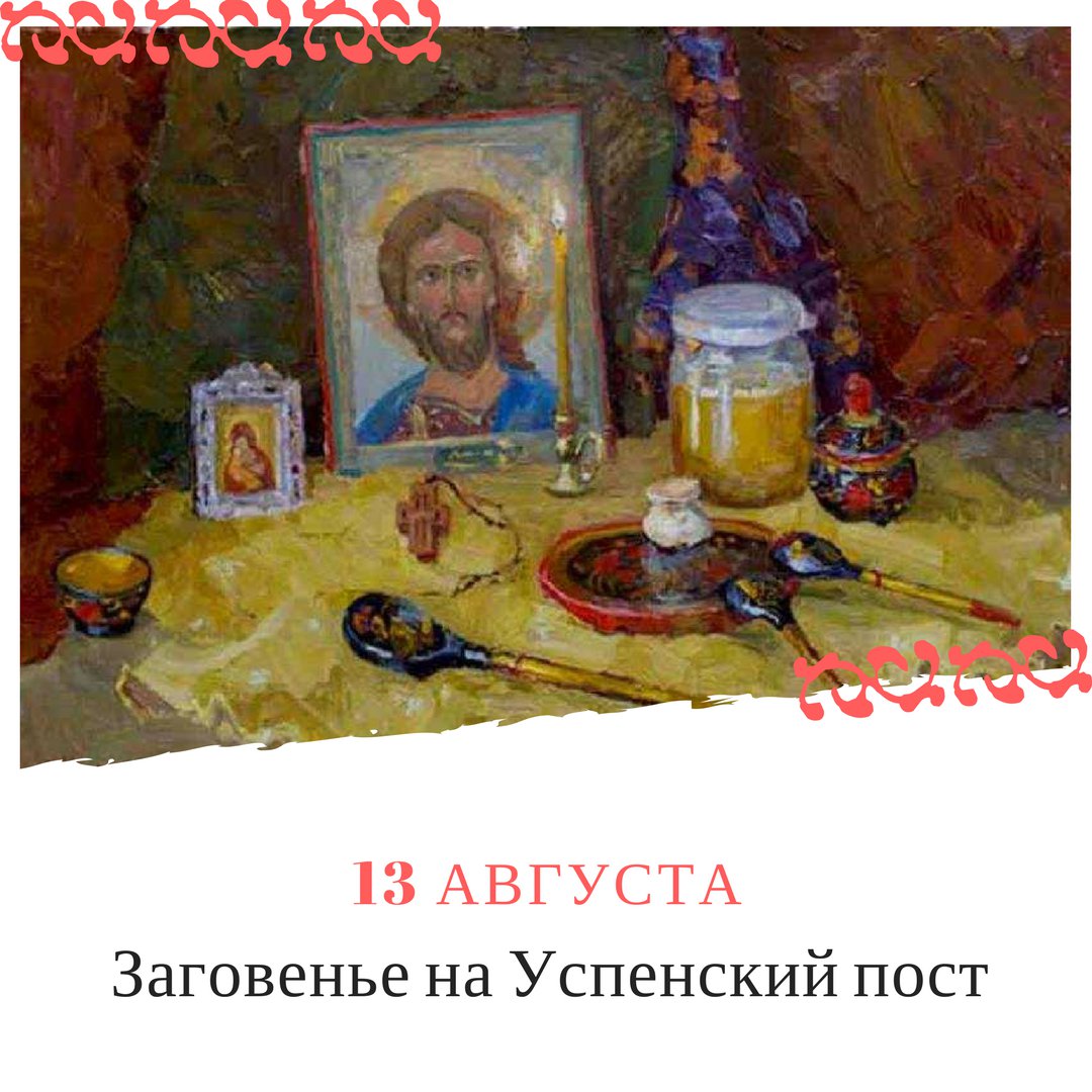 13 августа — заговенье на Успенский пост, предпразднство происхождения Честны́х Древ Животворящего Креста Господня, канун Медового Спаса