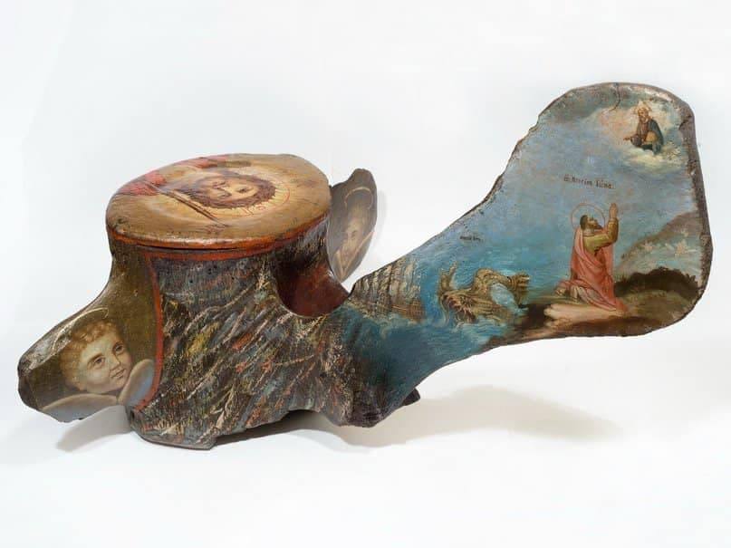 Наша Вологодчина XIX века. Мощный иконографический шедевр на позвонке кита: Преображение, лик Христа, пророк Иона и проглотивший его кит.