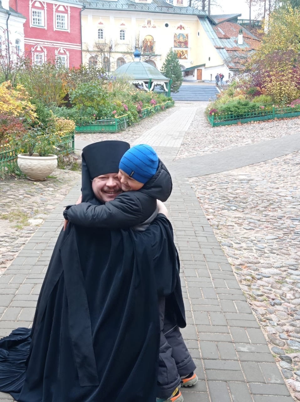 На фото с иеромонахом Гавриилом - благочестивый маленький паломник, славно потрудившийся вместе со взрослыми на послушании в просфорне