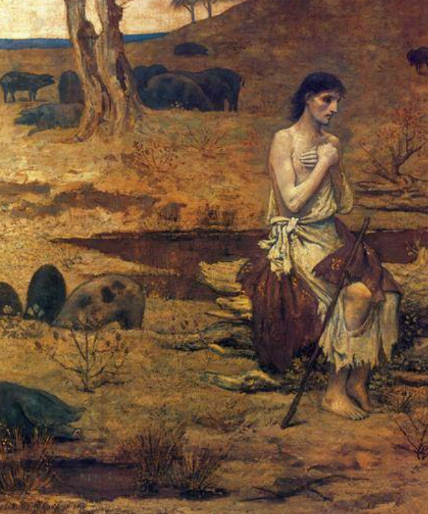 The Lord said this parable: "There was a man who had two sons; and the younger of them said to his father, 'Father, give me the share of the property that falls to me.' And he divided his living between them. Not many days later, the younger son gathered all he had and took his journey into a far country, and there he squandered his property in loose living. And when he had spent everything, a great famine arose in that country, and he began to be in want. So he went and joined himself to one of the citizens of that country, who sent him into his fields to feed swine. And he would gladly have filled his belly with the pods that the swine ate; and no one gave him anything. But when he came to himself he said, 'How many of my father's hired servants have bread enough and to spare, but I perish here with hunger! I will arise and go to my father, and I will say to him, 'Father, I have sinned against heaven and before you; I am no longer worthy to be called your son; treat me as one of your hired servants.' And he arose and came to his father.