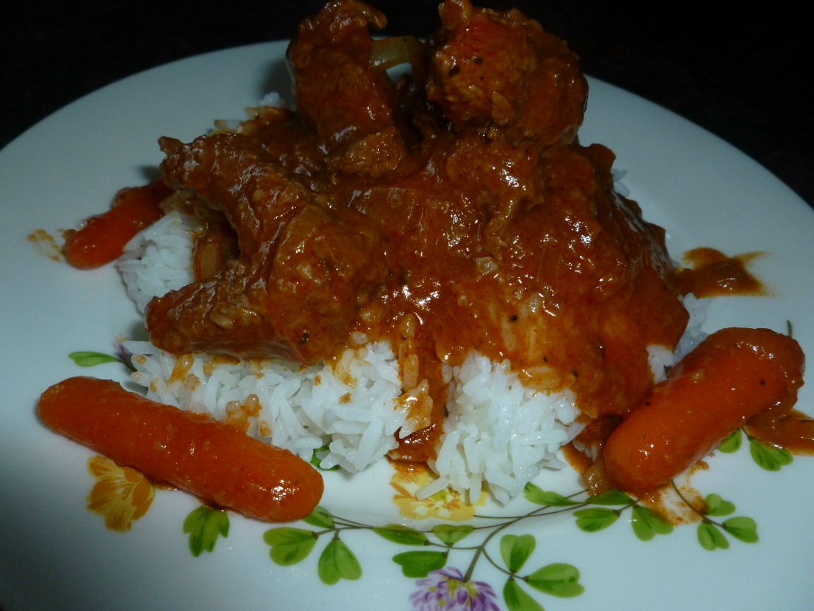 tetiana t ,да нет никакого рецепта  Сама что то наворганила  ...Обваляла мясо в муке и обжарила в казане,затем мясо вынула.Долила чуток масла и обжарила лук ,потом порезала помидоры и обжарила вместе.Разные приправы,соль,перец,томатный сок(если есть) кетчуп.Перелила этот соус в отдельную посуду.Высыпала обратно мясо.Долить водички тушить почти до готовности.За мин 10 влить соус.Попробовать чего не хватает,добавить.Из за того что мясо было в муке,этот соус будет густенький не много.Я еще пол чайной ложки сахара кладу.Добавить бэби кэрот и протушить до готовности.