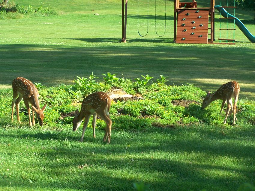 Cнято полчаса назад из окна. Вот такая троица забрела на бэк-ярд.