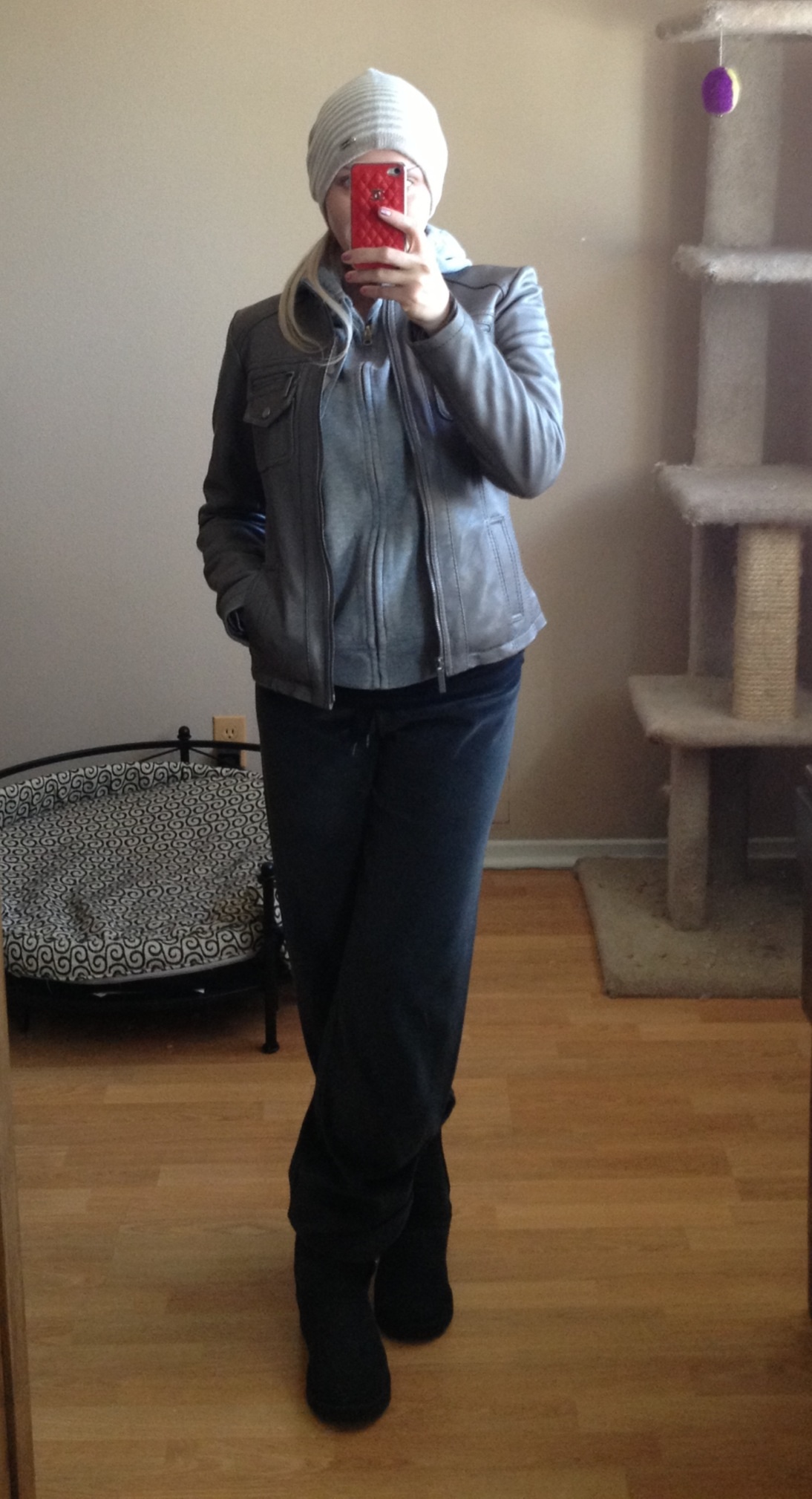 Стрекозка писал(а): Спасибо, Манонина и Полина Девы купила я таки велюровые штаны у ВС. xs - хорошо мне и по длине и о ширине. Еще шапку кляйна такую душевную купила  тонкая и длинная -сзади можно гармошкой положить на затылке ближе к шее. Вот посмотрите: это я так полечу. Штанцы, уги, майка, свэтшрт, кожанка и шапка. мне нравится...сама такие брюки вряд ли в уги заправлю...