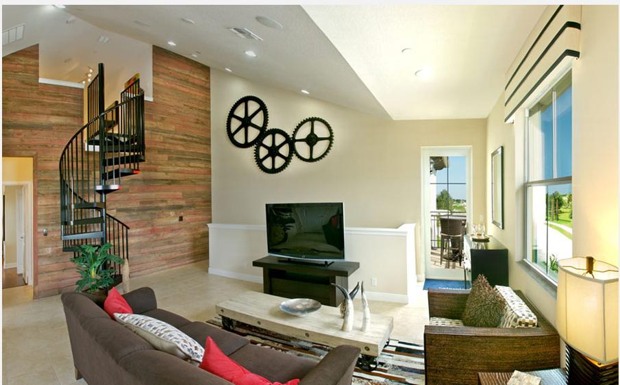 Elena MPF писал(а): Lusy писал(а): Лена спасибо большое. Теперь есть идеи....мы (я с сыном) тоже думали про фотографии в рамках, но стена очень большая. 25' высотой, я стала думать о ткани в рамке (2-3 большие рамки), чтовы не загружать много информации фотографиями. Что скажите? Или вот так вот как на картинке камнем, но я думау что это обои  again Камень конечно кравиво и дорого смотрится, и будет точно так же как на картинке в показном доме, которую вы раньше ставили, но мне лично не нравится линия верха-разные уровни- дешевит на мой взгляд, но это мое мнение, вас может и тревожит это совсем. А мебель как Вы хотите расставить? как в показном доме? Я бы поставила наоборот, диванчик который стоит спиной к окну в противоположную сторону, чтобы сидя на нем смотреть в окно, а не лицезреть лестницу. Тогда есть смысл выделить другую стену как фокал пойнт- которая посредине, на мой взгляд она заслуживает большего внимания чем боковая стена, и соответственно другой диванчик поставить к перегородке лестницы. Или же стену напротив перегородки выделить. Хотя я ж не знаю что у вас со стороны фотографа на фото показного дома. Потому как лестница хотя и жутко небезопастная, но смотрится красиво уже сама по себе без камня или дерева. Лена спасибо. Комната в принципе полупустая. Как заходишь на второй этаж сразу вид= лестница, комтата с двумя большими окнами и апендикс кухня. Все открыто. Я купила диван угловои и пролетела с углом (правый угол). Пробовали ставить диван как вы говорите напротив окон, но тогда ходить придется осторожно, дабы лестница опасная, а это также и проход в комнату сына, его ванную и ко мне в мастер бедроом. Не хочется мне телик большой покупать. У меня в комнате есть телевизор. У сына тоже, но там вообше не используется. Купить большоу телик и пыль собирать? Хотелось бы сделать комнату приятной для отдыха. Кстати там проход на балкон есть. Я посмотрела картинки что ви мне послали ранее, покапалась на тех саитах...думаю придумаем что нибудь интересное. Я с вами согласна про не ровный вврерх, но что поделать...как уж есть. Спасибо еше раз, как все сделаем покажу результат.