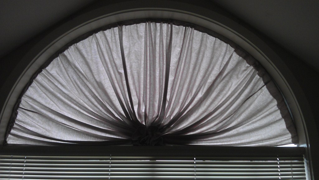 Karsy писал(а): Может кто присоветует, что придумать на окно. Окно трехстворчатое, с полукруглой вставкой сверху (я тут по ходу дела картинку ищу, постараюсь вставить). По обестороны от окна планируются книжные полки, сразу под окном - кушетка. Мне надо придумать что-то (жалюзи, шторы - не суть важно), на все окно (т.е. и на верхнюю полукруглую часть), т.к. оно у нас в библиотеке на солнечной стороне и книги на полках жутко выгорают. Во, окно типа такого: Karsy, у нас аналогичная проблема была. Моя свекровка вот что сделала, а до этого большое полотенце висело :) Она купила какие-то гнущиеся палки в хоумдипо, материал самый дешевый и собрала вот такую конструкцию. Нам очень нравится с мужем. Конечно, тут на скорую руку слеплено, можно было бы и поаккуратней, но она второпях делала перед отъездом к себе домой. Теперь хоть солнце не так печет.. хаха.. это я про солнце жалуюсь в Сиэттле?